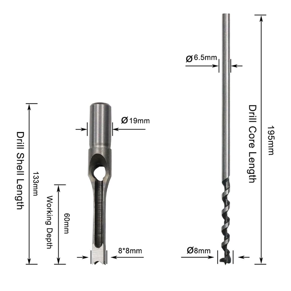 Made of premium quality high speed steel with high hardness and durability anti-rust. These square drill hole bits are suitable for construction installation renovation decoration industry etc.Features:Made of premium quality high speed steel with high hardness and durability anti-rust.Crushing round bits and square outer wall broken slag dust can be discharged from the tube.Exquisite blade grinding process edge is shar-per and more sturdy.Reduce labor intensity of construction workers and speed up the construction.Drilling square holes in wood with a mortising machine or a mortising attachment.Suitable for construction installation renovation decoration industry etc.Specifications:Clamping cylindrical diameter: 19mmType: 9.5mm(3/8) 8mm(5/16) 12.7mm(1/2) 11mm(7/16) (optional)Drill core: 9.5mm(3/8) 8mm(5/16) 12.7mm(1/2) 11mm(7/16) (optional)Package size: 230 * 35 * 35mmPackage weight: about 220gNote:1. Please allow 1-3mm differs due to manual measurement.2. Due to the different display and different light the picture may not reflect the actual color of the item. Thanks for your understanding.3. Square hole drill can not be used on an electric drill drill square holes need to fit a square hole drill drilling (mortise and tenon machine) to use.4. In case drill bits become overheated and get burned up due to fast rotary friction we suggest use some cutting fluid to keep the bits cold during usage.Packing List:1 * Square Hole Drill