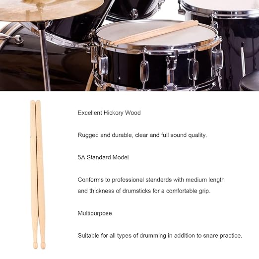 5A Classic Hickory Drumsticks – Durable Professional Sticks for Beginners & Adults