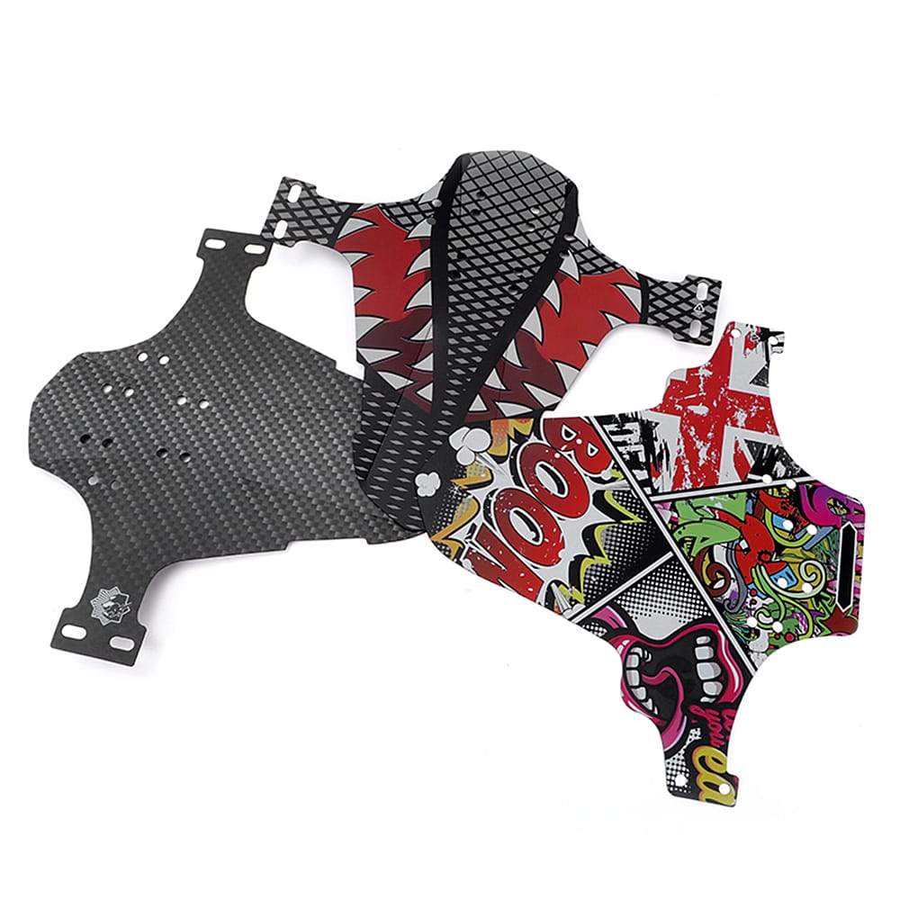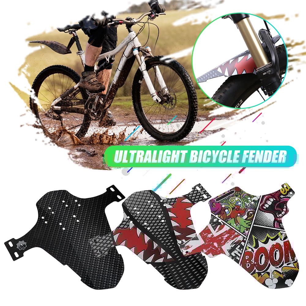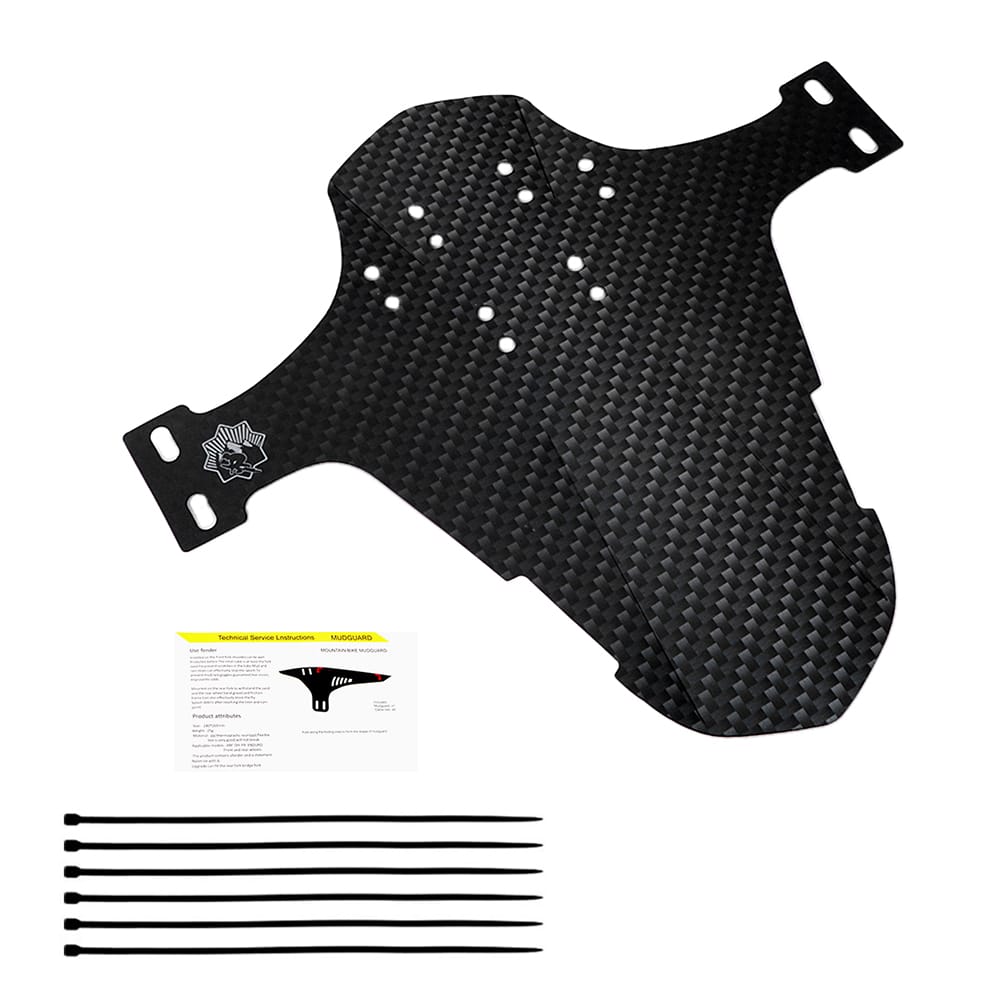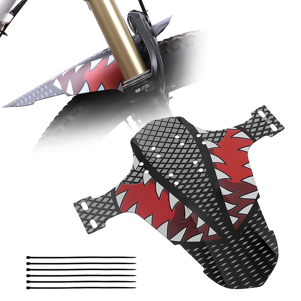 This mud guard is lightweight yet practical to keep your bike clean.Features:Made of high-strength PP material lightweight and very durable.Protects your bike from flying mud and debris and keep your bike clean.Protects your fork stanchions and bridge from getting caked.Comes with 6 zip ties easy to install.Front and rear compatible.Specifications:Material: PPPattern: Pattern A / Pattern B / Pattern C (optional)Size: 28 * 26cm / 11.0 * 10.2inWeight: Approx. 20g / 0.7ozPackage List:1 * Bicycle Mudguard