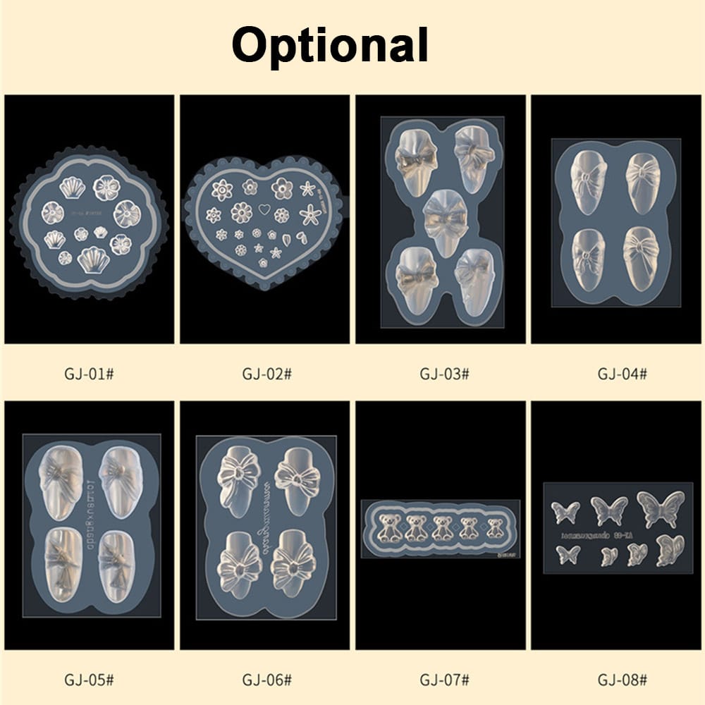 Features:Made from the silicone which is environmental healthy and durable.With the beautiful pre-cut design it can easily DIY the beautiful nail art decorations to beautify your nail.Nail molds are easy to use each mold has a different groove you can make different nails decorations with multiple shapes.Easy to clean with soap and water after using.Portable easy to carry.Use steps:1. Mixed color gel and UV gel together2. Put color gel into plate cure 2 minutes3. Take out4. Apply UV gel on nails5. Put on suitable position6. Cure it and finishedSpecifications:Type: Nail Decoration MoldMaterial: SiliconeColor: TransparentModel: GJ-01# GJ-02# GJ-03# GJ-04# GJ-05# GJ-06# GJ-07# GJ-08#(Optional)Package Size: 13 * 9 * 1cm / 5.1 * 3.5 * 0.4inPackage Weight: 20g / 0.7ozPackage List:1 * Nail Decoration Mold