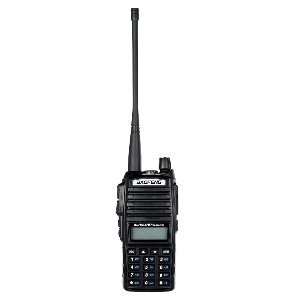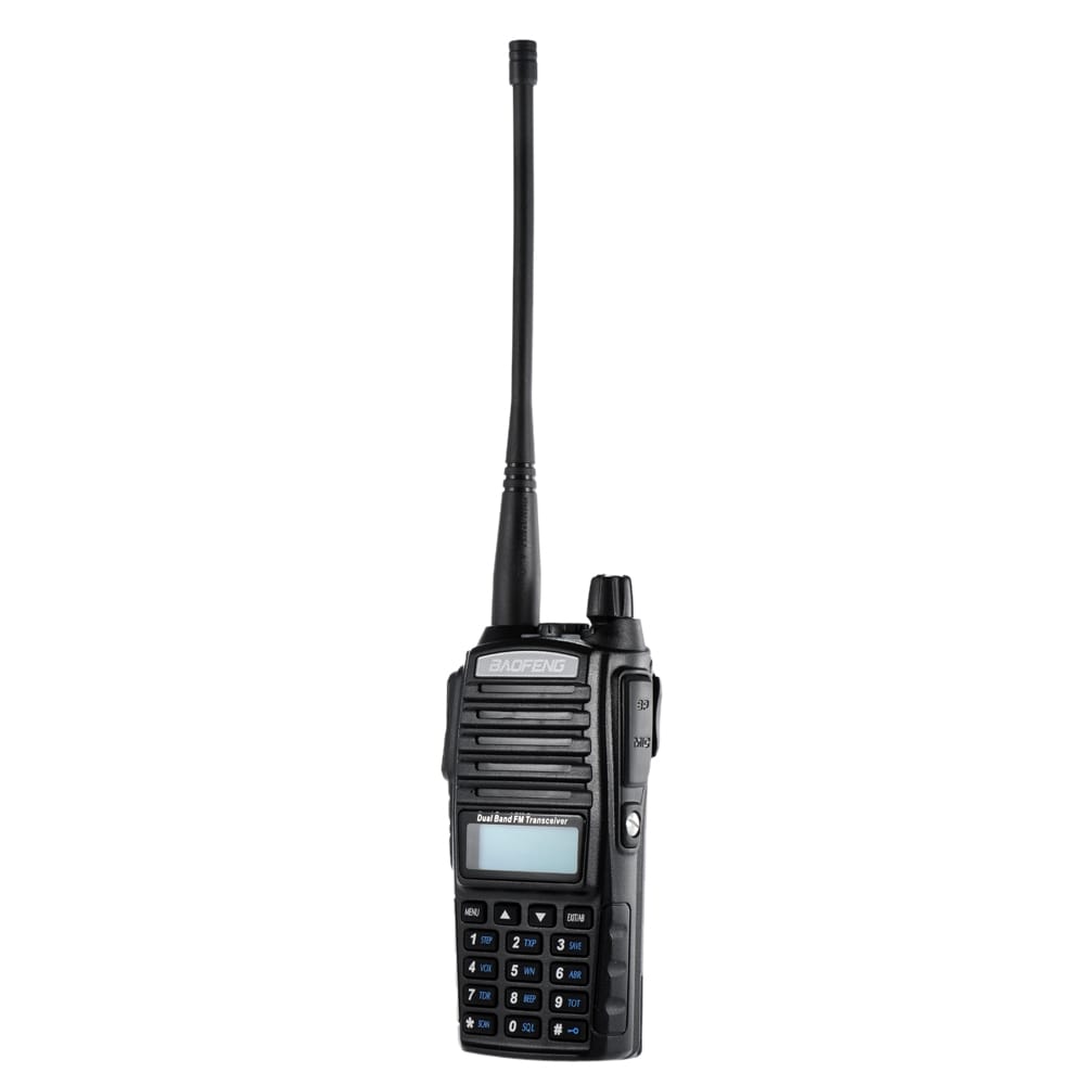 Please Note: The walkie-talkie is insulating treatment. Please remove the battery and remove the insulation tape before charging and using.BAOFENG UV-82 is a dual band radio. This easy-to-use radio will deliver you secure instant and reliable communication at peak effciency.Features:Dual-band handheld transceiver with LCD display function.Commercial FM radio receiver(65MHz~108MHz).Frequency mode / Channel mode.DTMF encoded.Incorporates 105 codes DCS and 50 privacy codes CTCSS programmable.6 selectable frequency step(2.5/5/6.25/10/12.5/20/25 KHz)Function VOX(vioce operate transmission).Emergency Alarm function.Up to 128 memory channels.Broadband(wide)/Narrowband(narrow)selectable.High power(5W)/Low power(1W)selectable.Display illumination and programmable keyboard.Programmable by PC.Built-in LED flashlight.Built-in RX CTCSS/DCX scan.Battery saving function.Specifications:Type: Dual-band TransceiverBrand: BAOFENGModel: UV-82Color: BlackFrequency: VHF136-174MHz / UHF400-520MHz (Dual Band)Channel: 128 memory channelsPower: 5WVoltage: DC7.4VFrequency stability: 2.5ppmWork temperature: -20?+50?Antenna impedance: 50?Battery: 2800mAh Li-ion batteryProduct size: Approx. 12 * 6 * 3.5cm / 4.7 * 2.4 * 1.4inProduct weight: Approx. 226g / 7.97ozPackage size: Approx.21 * 17.5 * 6cm / 8.3 * 6.9 * 2.4inPackage weight: Approx.495g / 17.45ozPackage List:1 * Interphone1 * Battery pack1 * Charge adapter1 * Drop-in charging tray1 * Earphone1 * Clip1 * Antenna1 * Hand strap1 * User manual(English)