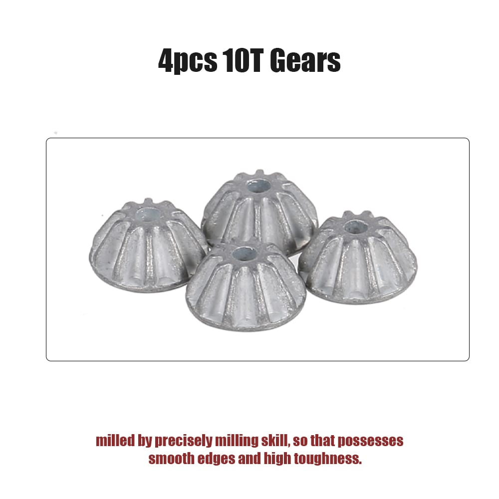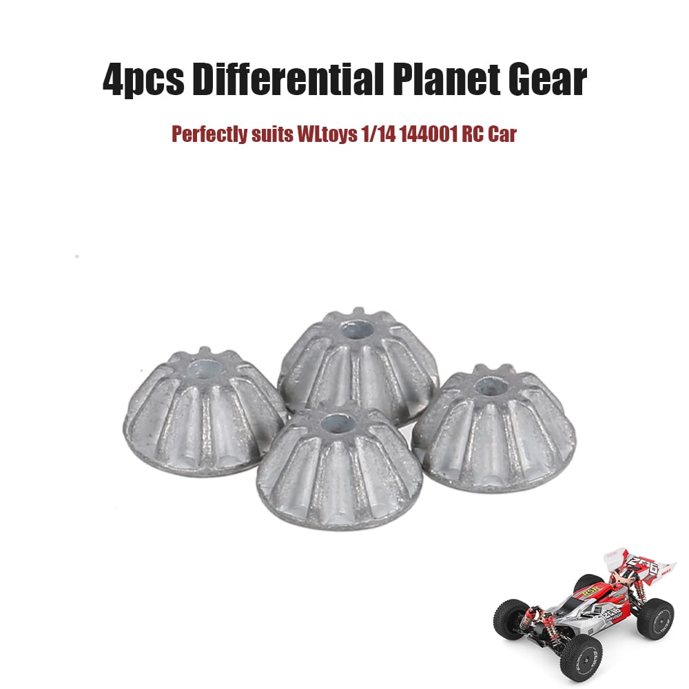 This 4pcs gears set is compatible with a differential of WLtoys 1/14 144001 RC car. Made of premium Zinc alloy they possess strong wear resistance dust-proof capacity and exact durability which are the ideal RC car parts.Feature:?This 4pcs 10T gears set is the best gear combo for WLtoys 1/14 144001 RC Car.?Made of high-quality metal Zinc alloy with strong wear resistance dust-proof capacity and exact durability.?The gears are milled by precisely milling skill so that possesses smooth edges and high toughness.? Specialized design exquisite craftsmanship and excellent quality.?After-sale Service Guarantee: Any problem please contact our store without hesitation. Honor to serve you.Specifications:Item name: Differential Planet Gear setMain material: Zinc alloyColor: SilverQuantity: 4pcsTeeth number: 10Item size: 8 * 8 * 4mm/pcsSuitable for: Differential of WLtoys 1/14 144001 RC CarPackage Information:Package size: 10 * 6 * 1cmPackage weight: 10gPolybag packing.Note:* There could be a few deviations due to manual measurement or slight color difference owing to photographing condition. Thank you for your understanding.Packing List:4 * Gears
