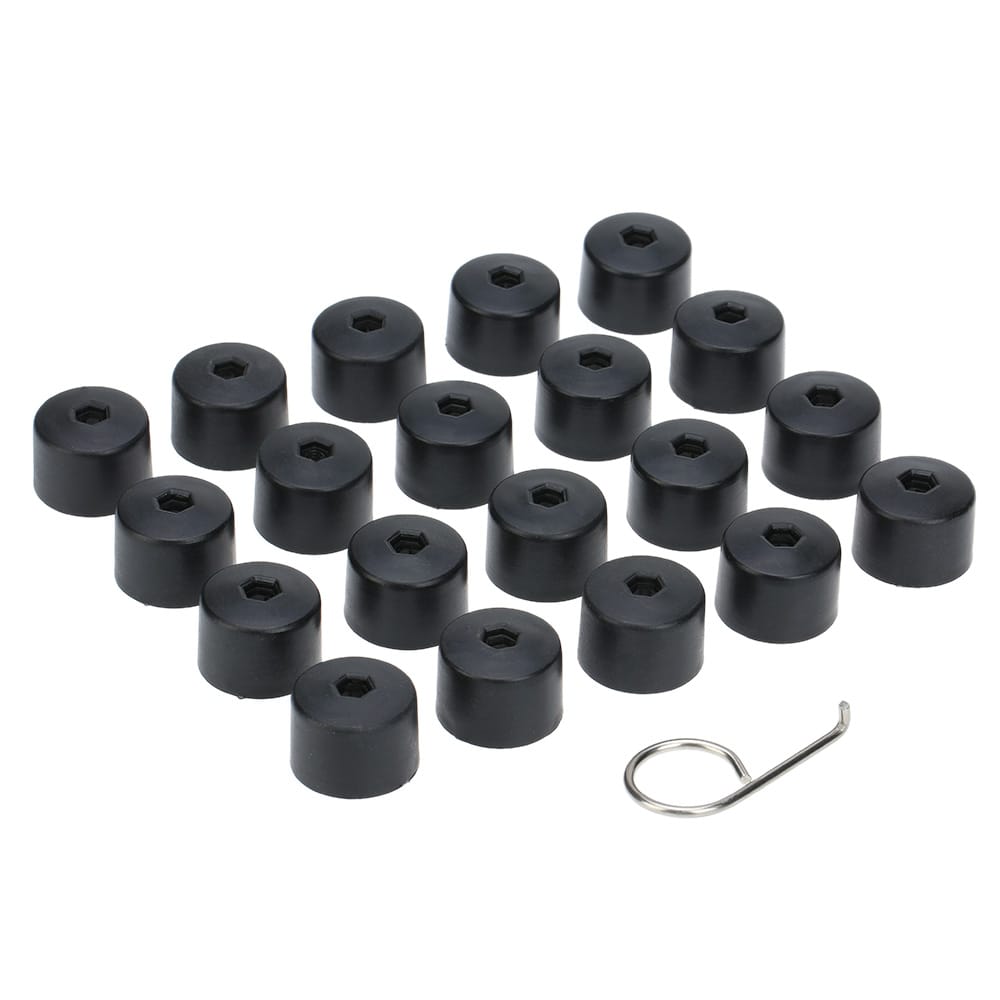Note: Please check the size and shape to make sure it fits for your car before buying.Features:These simple nut caps help protect your bolt heads from dust and corrosion.Enhances the finish of your car wheels.Simply push over the top of your existing nut or bolt for easy fitment.Supplied with removal tool.Specifications:Appearance: square holeMaterial: plasticQuantity: 1 set (20 pcs)Internal Diameter: 17mmHeight: 19mmExternal Diameter: 30mmFitment: fit for VW alloy wheels with 17mm boltsCompatible Model: for Golf MK4 for Bora for Passat for Beetle for Lupo for Polo for Audi for Skoda etc.Package size: 15 * 13 * 4cm / 6 * 5 * 1.6inPackage weight: 110g / 3.9ozPackage List:1 * Set of Caps(20 pcs)1 * Tool