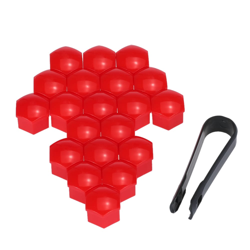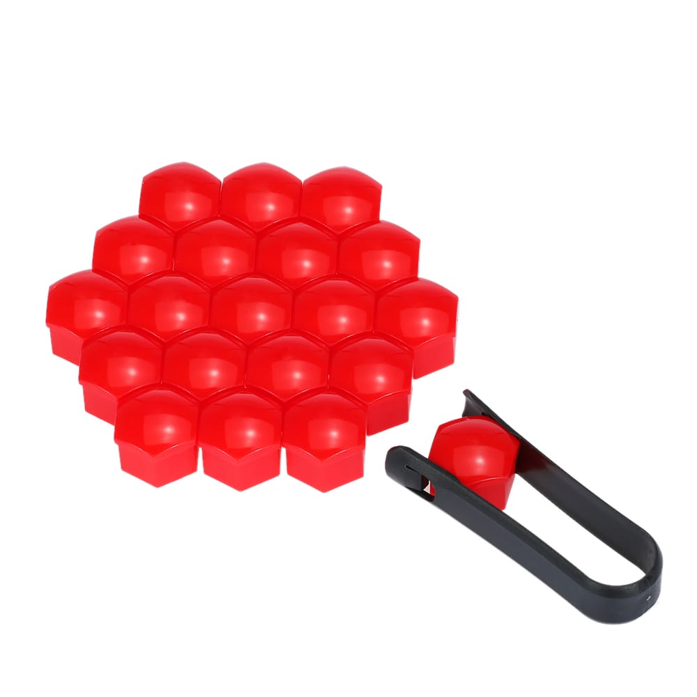 This is a pack of 19mm wheel nut covers which is universal for all 19mm standard wheel nuts.Features:Install any wheel with a 19mm bolt or nut.Simply push the bolt down to fit it securely.Enhance the smoothness of the wheel.Protect the bolt head from corrosion.Different colors for you to choose make the exterior of your car more beautiful.Specifications:Color: Red Blue Black Yellow Purple Green Gray (optional)Material: ABS plasticStandard: 19mmPackage size: 16*15*2cm/6.3*5.9*0.8cmWeight: 64g/2.25ozPackage List:20 * 19mm Nut Caps1 * Removal Tool