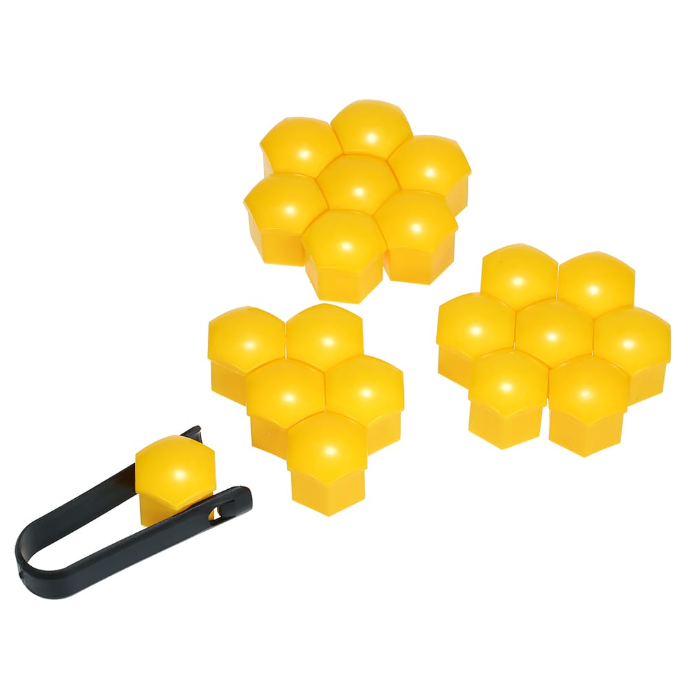 This is a pack of 19mm wheel nut covers which is universal for all 19mm standard wheel nuts.Features:Install any wheel with a 19mm bolt or nut.Simply push the bolt down to fit it securely.Enhance the smoothness of the wheel.Protect the bolt head from corrosion.Different colors for you to choose make the exterior of your car more beautiful.Specifications:Color: Red Blue Black Yellow Purple Green Gray (optional)Material: ABS plasticStandard: 19mmPackage size: 16*15*2cm/6.3*5.9*0.8cmWeight: 64g/2.25ozPackage List:20 * 19mm Nut Caps1 * Removal Tool