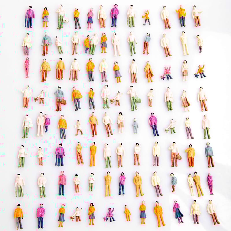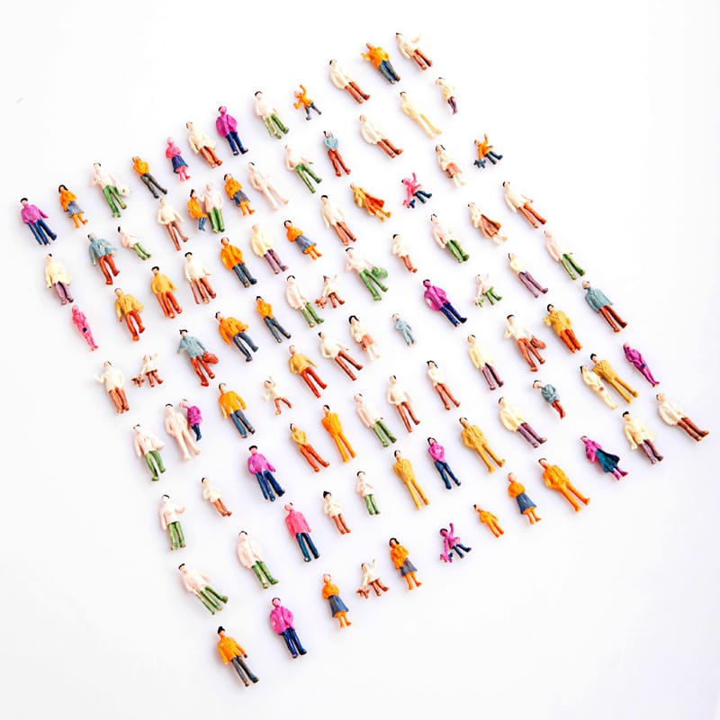 100pcs HO Scale 1:100 Mix Painted Model Train Park Street Passenger People FiguresFeatures:Pack of 100pcs male and female model train passenger figures with various poses.Painted and ready to put into position.Perfect for layout and landscape models.Specifications:Quantity: 100pcsScale: 1:100Material: ABSColor: MulticolorHeight: Approx. 10-19mm / 0.4-0.7Total weight: 11g / 0.4ozPackage list:100 * Painted Model People (1:100)