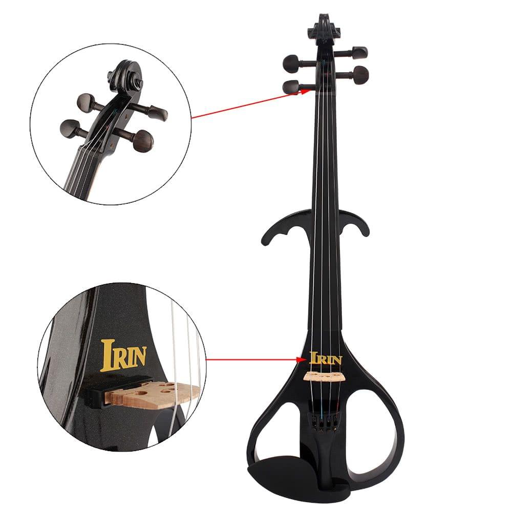 description":"Features: 4/4 electric violin, body and neck are made of maple solid wood. Ebonize Fretboard, bridge, pegs and chin rest, Arbor bow and artificial horsetail. Built-in professional pickup with volume and tone control knobs. A line out, mic and phone port of 3.5mm. Powered by 9V Alkaline battery.(not included) A soft-sided box, protect violin from bumps and scratch during transport. Comes with a 1/4\" cable, a bow, a rosin, a earphone, a chin rest, an extra set of srtings, a case and a cleaning cloth. Specification: Type: Full Size 4/4 Color: Black Body material: Maple String material: Steel Fretboard material: Ebonize Bow material: Arbor Cable: 1/4\" plug Power: 9V battery (not included) Item size: 60 * 20 * 7.5cm / 24.6 * 7.8 * 2.9in Item weight: 520g / 18.3oz Package size: 80 * 25 * 12cm / 31.5 * 9.8 * 4.7in Package weight: 1620g / 57.1oz Package List: 1 * Violin 1 * Bow 1 * Cable 1 * Rosin 1 * Earphone 1 * Chin Rest 1 * Set of Strings 1 * Cleaning cloth 1 * Case