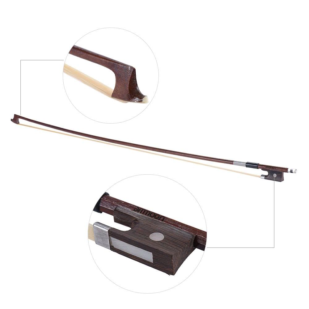 description":"Features: 2pcs violin bows, designed for 4/4 violin, about 74cm long. High-quality Brazil wood stick and white horse hair. Decorative cassia siamea frog, exquisite workmanship. Great balance and weight distribution for smooth playing. Making nice and bright sound while playing violin. Specifications: Fit: 4/4 Violin Bow Length: 74cm / 29.1in Bow Weight: 61g / 2.1oz (Single) Package Size: 76 * 4 * 4cm / 30.0 * 1.6 * 1.6in Package Weight: 428g/ 15.1oz Note: The violin showed in the picture is not included. Package List: 2* Violin Bows