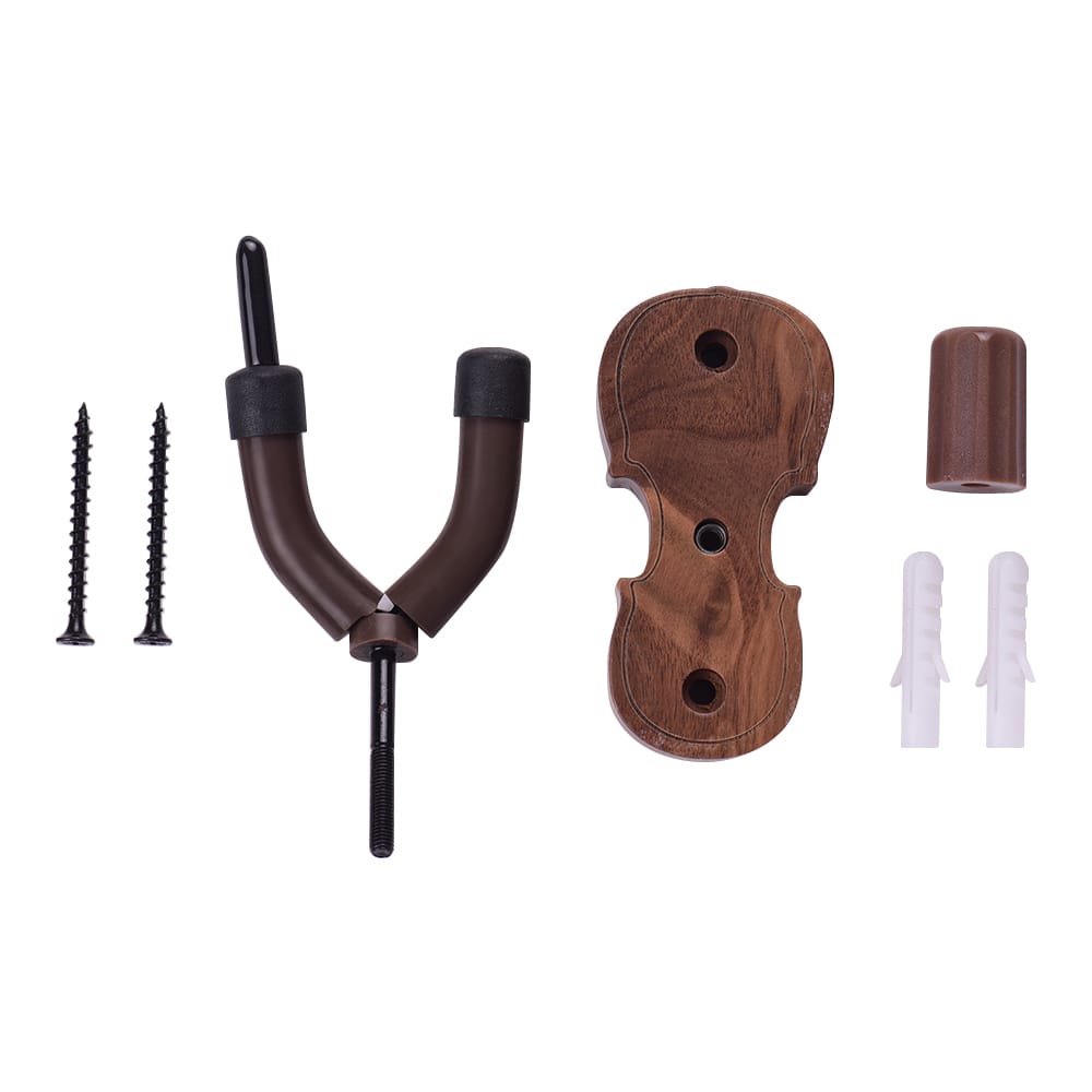 Features:This wall mount hanger is specially designed for violins or violas.Designed with bow holder very considerate and convenient.Rubber cushion covers entire contact area no scratch to your violin/ viola.With durable wood base including the mounting screws easy to install.Suitable for storage and exhibition of violin/viola.Specifications:Material: Wood + Plastic + RubberItem Weight: 100g / 3.5ozPackage Size: 14 * 7 * 4cm / 5.5 * 2.8 * 1.6inPackage Weight: 130g / 4.6ozNote:The violin showed in the picture is not included.Package List:1 * Base1 * Plastic Arm2 * Screws2 * Dowels
