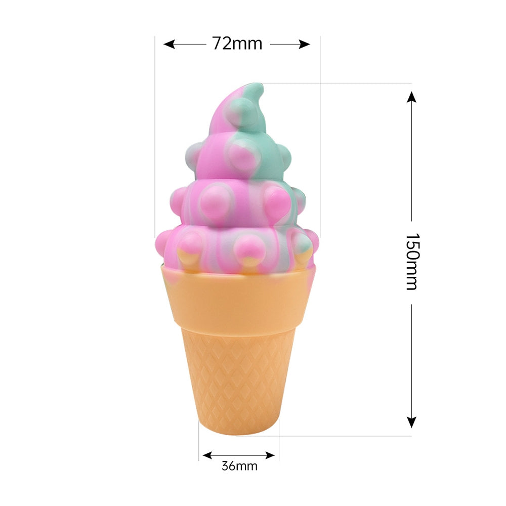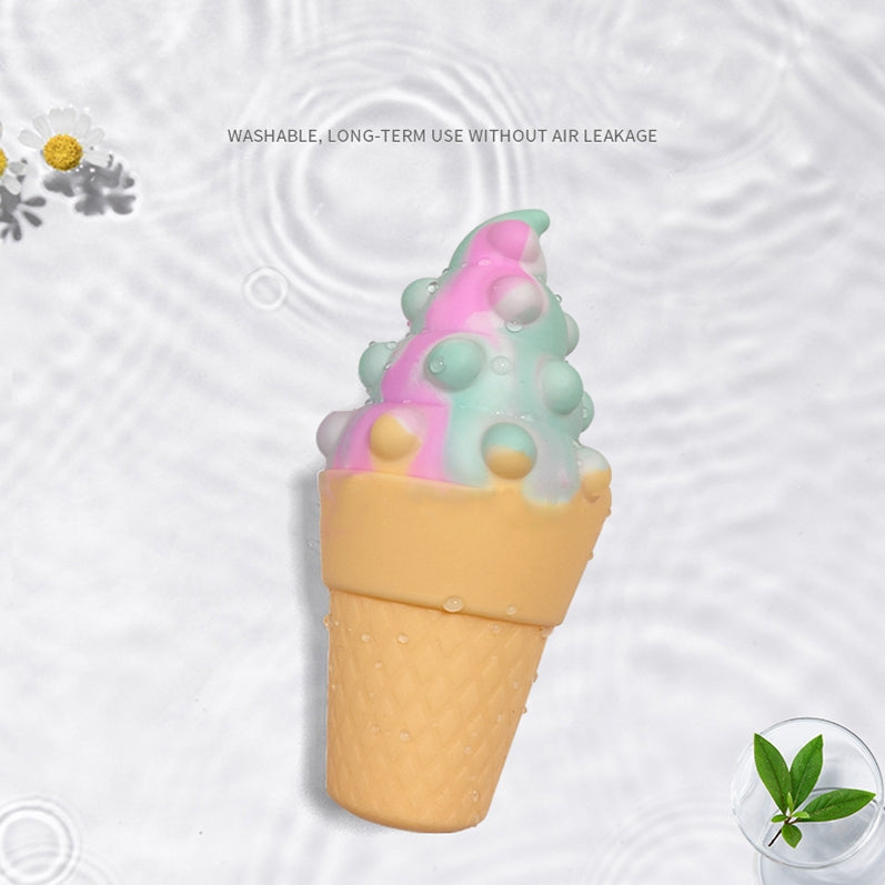 1. Material: Silicone 2. Uses: childrens toys, relieve stress, release emotions, relax hand muscles 3. Made of silicone material, soft and skin-friendly, comfortable to the touch 4. It can be directly washed with water, and it can be used repeatedly without air leakage. 5. Ice cream design, cute and fun 6. Dimensions: 15 x 7.2 x 3.6 cm 7. Weight: about 60g/pc