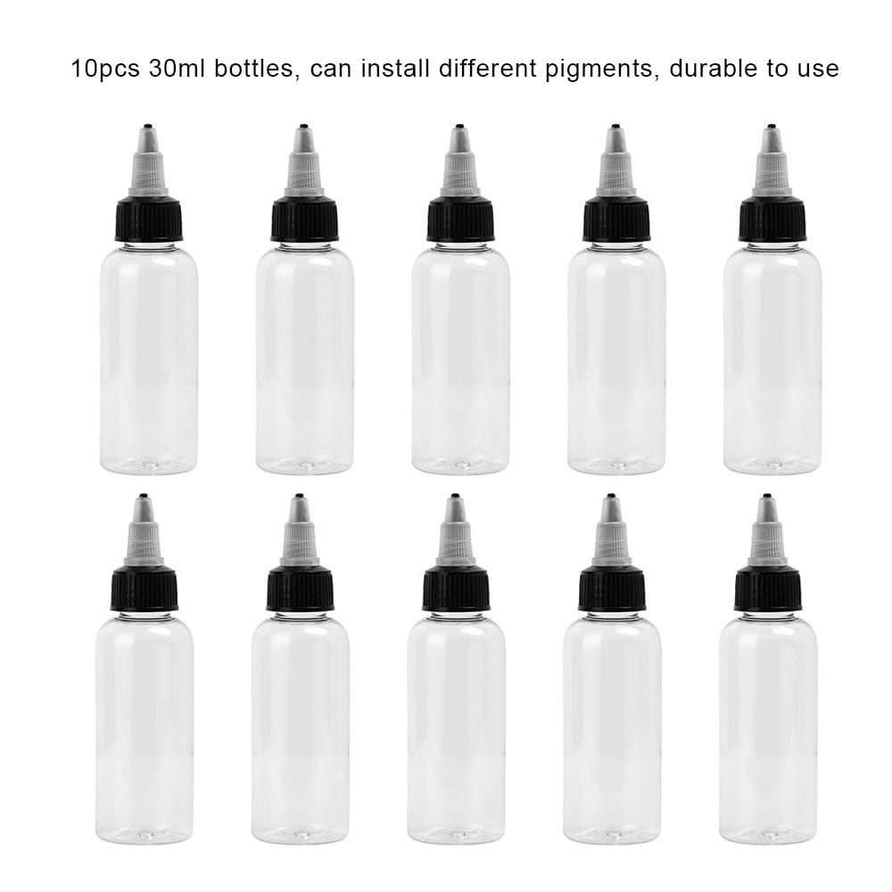 Description:This plastic tattoo ink pigment bottle can install all the pigment you want for mixing colors and shaders. Come with non-leak twist cap more convenient to use.Features:Plastic tattoo ink pigment bottle useful practical can be used to install ink.Suitable for installing all the pigment you want. Perfect for tattoo art.10pcs 30ml bottles can install different pigments durable to use.For mixing colors and shaders.Come with non-leak twist cap.Specifications:Type: Empty Ink BottlesMaterial: Plastic PETColor: TransparentQuantity: 10PcsCapacity: 30ml(1pc)Item Size: 10.5cm * 2.7cm / 4.1 * 1.1inPackage Size: 23 * 16 * 4cm / 9.1 * 6.3 * 1.6inPackage Weight: 110g / 4.0ozPackage List:10 * 30ml Empty Ink Bottles