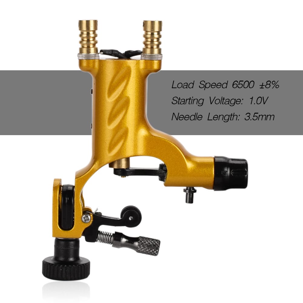 OverviewThis tattoo machine kit is ideal for everyday practice for tattoo beginners and tattoo artists as it comes in a variety of styles including all the preparations for tattoos. With such a tattoo kit you can learn immediately. According to the matching color practice you can quickly grasp the color of the tattoo pattern. Available in black and gold.Features* The complete kit one-time solution to tattoo needs convenient and fast.* The tattoo machine is a lightweight zinc alloy material which can not cause soreness when the wrist is working for a long time. It can be connected to the conventional hook line.* Tattoo machine handle connection 9mm round can be docked with conventional 8mm steel pipe tattoo handle special design more fashionable.* The color wheel is suitable for drawing color paint tattoo nail and color when used as a reference. The color of the color card is accurate the front is the color reference and the back is the color reference.* Suitable for professional tattoo artists beginners tattoo shops.SpecificationsStarting Voltage: 1.0VNeedle Length: 3.5mmLoad Current: 360mA maxWorking Load Speed 65008% rpmProduct Size (including product packaging): 21.3 * 14 * 11.5cmColor: Black Gold (Optional)Package ListHook Line Tattoo Machine * 1pcTattoo Five-claw Aluminum Handle * 1pcRandom Model Practice Tattoo Needle * 10pcs + Random Matching Model Practice Tattoo Needle Mouth * 10pcs2mm Tattoo Hex Wrench 2pcs + Random Color Tattoo Fixed Rubber Band 10pcs + Random Color Tattoo Pin Pad * 10pcsBlack Plastic Striped Rectangular Tattoo Pedal * 1pcCurved Pointer Black Mini Power * 1pc + Tattoo Power Cord * 1pcBlack Steel Tattoo Hook Line * 1pcA Guide to Mixing Color * 1pc