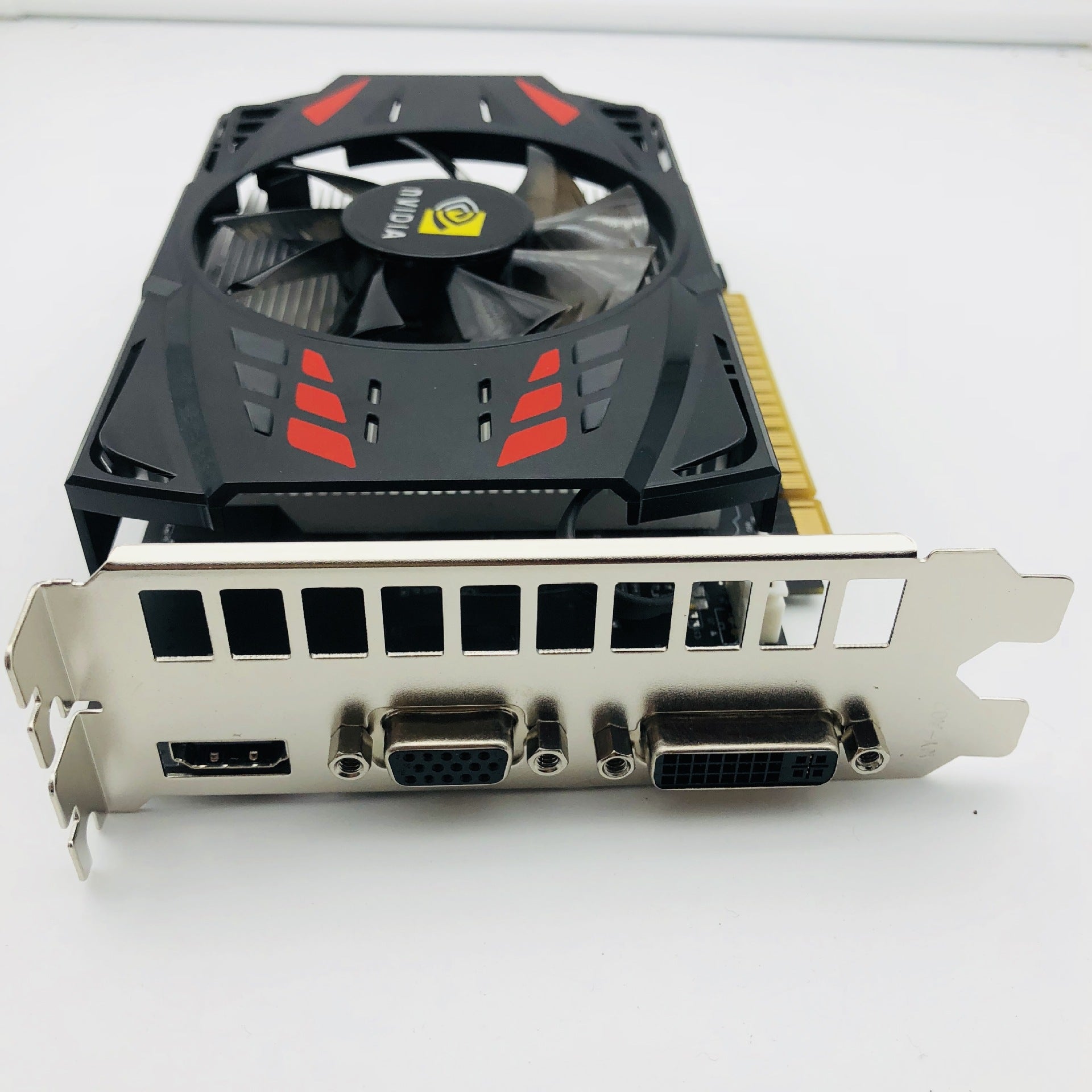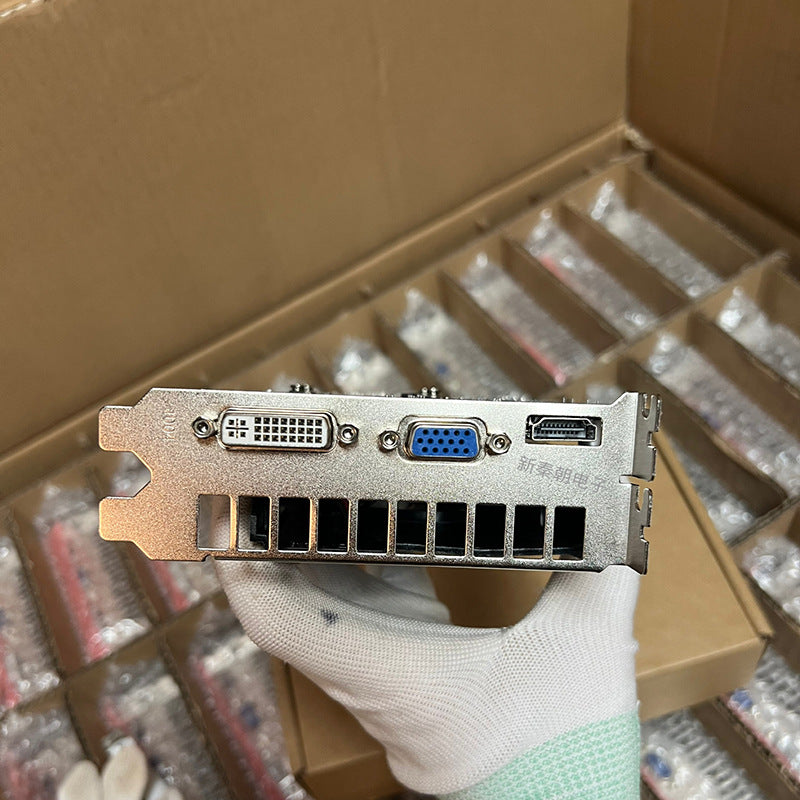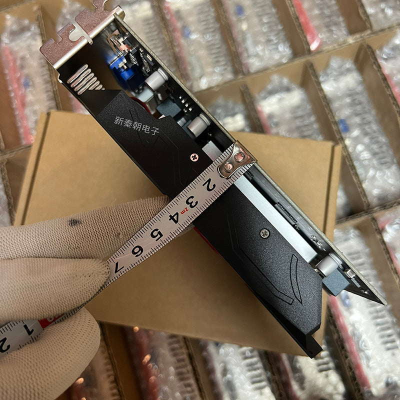 large chassis (full height) baffle height is 12CM. Low power consumption, high performance, only 80W power, no requirements for power supply, 250W power supply can be brought up! No external power supply is required. Cooling method: single fan or dual fan. Net weight: 0.46 (kg). Box gross weight: 0.5 (kg). Output interface: DVI + VGA + HDMI interface, meeting your various display needs.