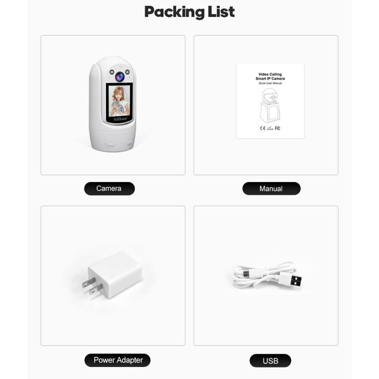 1. Sensor: 2 million high-definition image sensor 2. Compression format: H.264 3. Focal length: 4mm 4. Resolution: 1080P 5. Frame rate: 15 frames 6. Audio: built-in microphone and speaker, support two-way voice 7. Rotation angle: horizontal 355 degrees, vertical 70 degrees 8. Power adapter: output DC: 5V/1.2A 9. Storage: maximum support 128G TF card storage (not included in this product) 10. Working temperature: -10 degrees Celsius to 50 degrees Celsius 11. Working humidity: 10%-90%RH 12. Alarm notification: mobile phone push notification 13. Support dual light source, support full-color night vision 14. Support AP hotspot mode, support mobile phone video playback 15. Built-in IR-Cut, no color cast indoors and outdoors, good night vision effect 16. Support Android, iOS