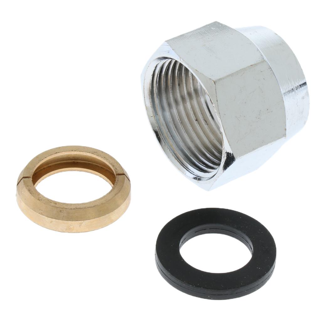 Nut: 26 x 21 mm / 1.02 x 0.83 inch; Female Thread: 19 mm / 0.75 inch; Rubber gasket inside diameter: 12 mm / 0.5 inch
