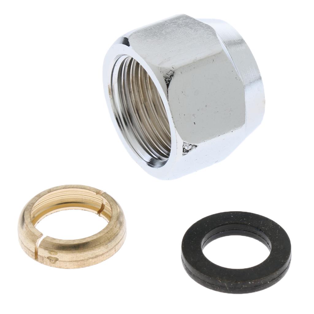 Nut: 26 x 21 mm / 1.02 x 0.83 inch; Female Thread: 19 mm / 0.75 inch; Rubber gasket inside diameter: 12 mm / 0.5 inch