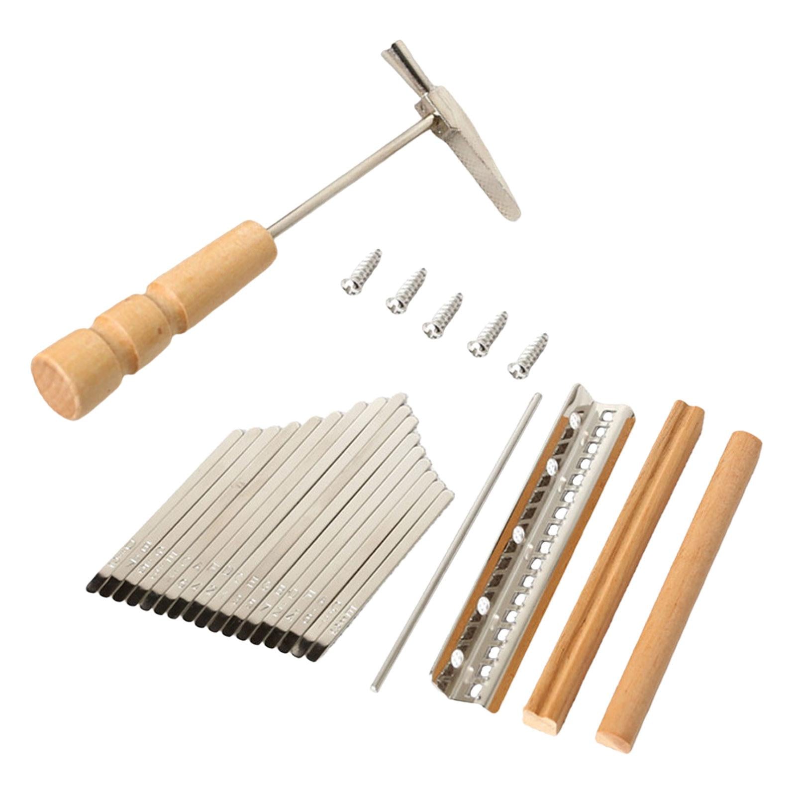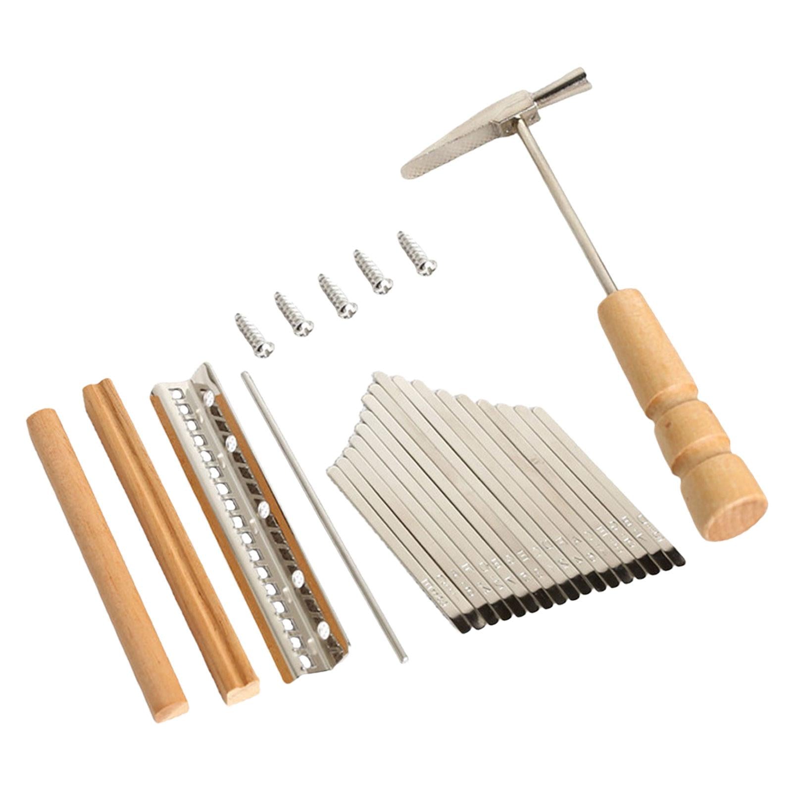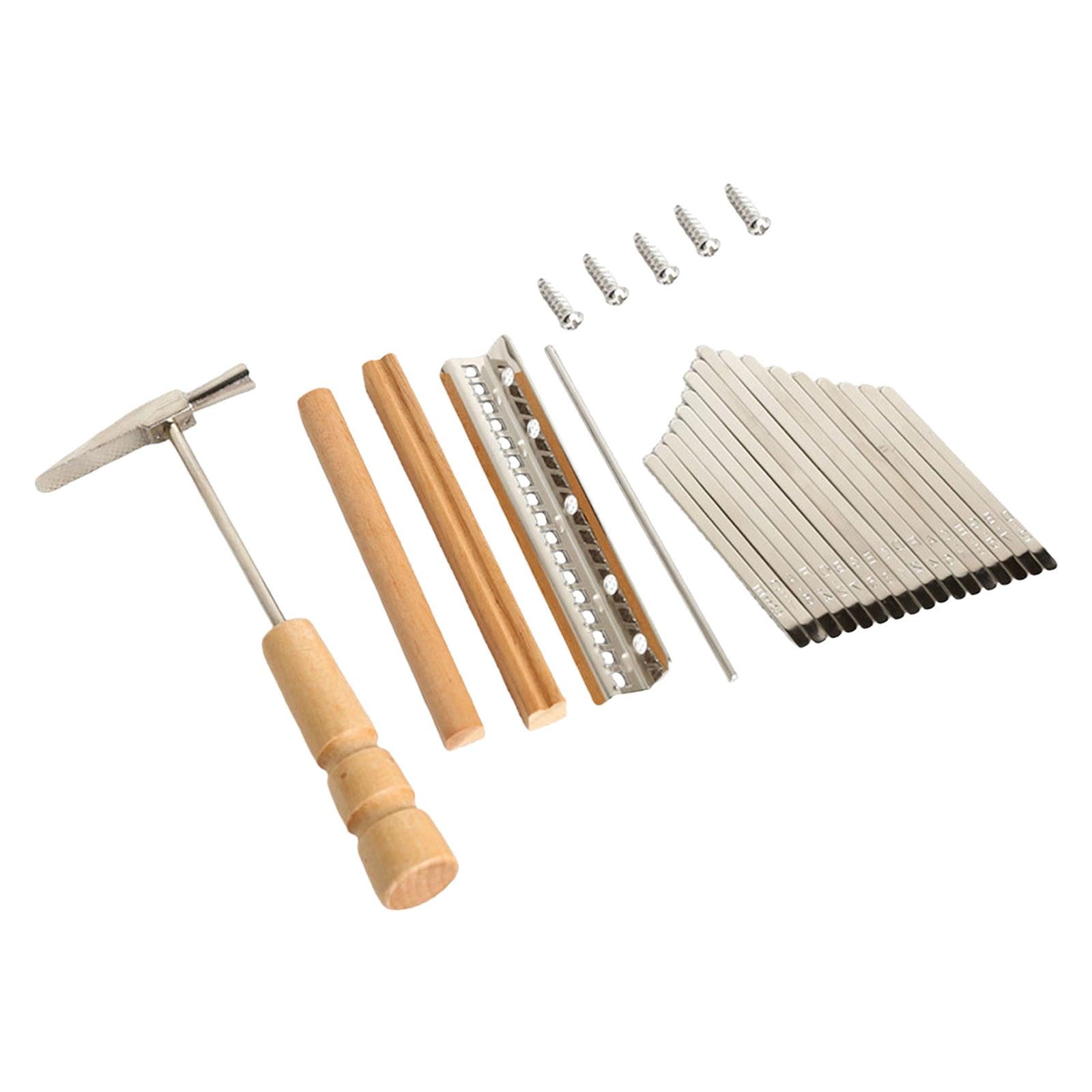 Package Contains: 17 keys, 1 saddle, 1 metal bridge, 5 screw, 1 tuning tool, 2 sleeper