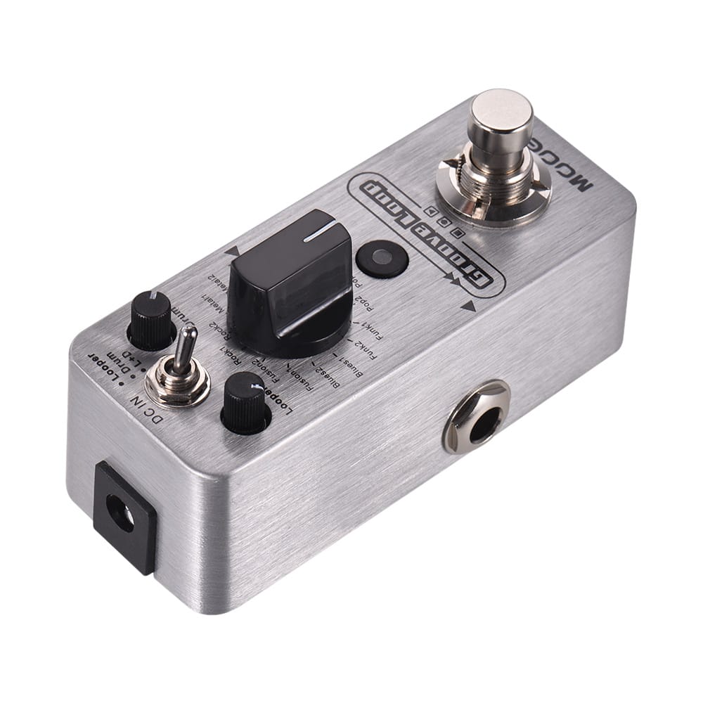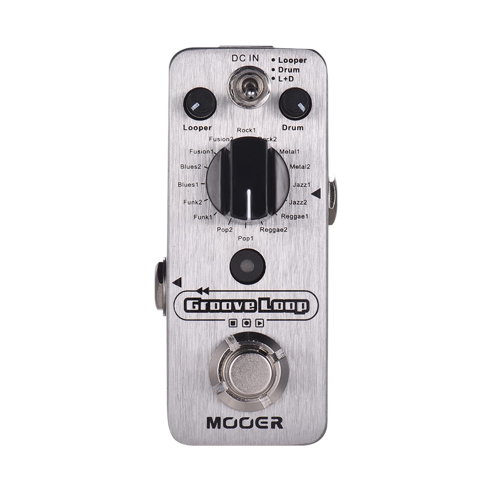 The MOOER GROOVE LOOP brings together both the MICRO LOOPER and MICRO DRUMMER into one micro pedal for the ultimate in a portable jamming companion. Both elements can be used independently from one and other or simultaneously. When used simultaneously the looper will be automatically synchronised to keep in time with the drum groove youve selected and an intro click will be played when recording the first loop to ensure youre in time with the groove.Features:Micro looper and drum machine in one pedal.8 drum groove styles with 2 variations of each 16 drum grooves in total.3 different modes: LOOPER DRUM LOOPER + DRUM.Independent playback level controls for LOOPER and DRUM.Tap tempo button makes adjusting the groove speed very easy.Specifications:Material: MetalMax. Recording Time: 20 minutesMax. Number of Recordings: unlimitedSampling Rate: 44.1KHzSampling Accuracy: 16bitSignal Input: 1/4Monaural Jack (impedance: 1M Ohms)Signal Output: 1/4Monaural Jack (impedance: 1K Ohms)Power Supply: DC 9V adapter (center minus plug)(not included)Item Size: Approx. 3.5 * 9 * 3cm / 1.4 * 3.5 * 1.2inItem Weight: Approx. 150g / 5.3ozPackage Size: 10.5 * 6 * 4.5cm / 4.1 * 2.4 * 1.8inPackage Weight: 185g / 6.5ozNote:The power adapter is not included.Please use the power adapter whose polarity is positive pole outside and negative pole inside. Otherwise the product may not work properly.Package List:1 * Effect Pedal1 * User Manual(English Chinese)