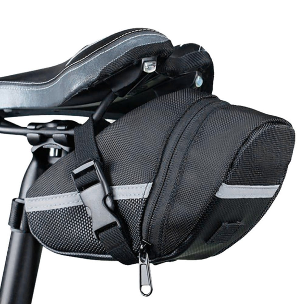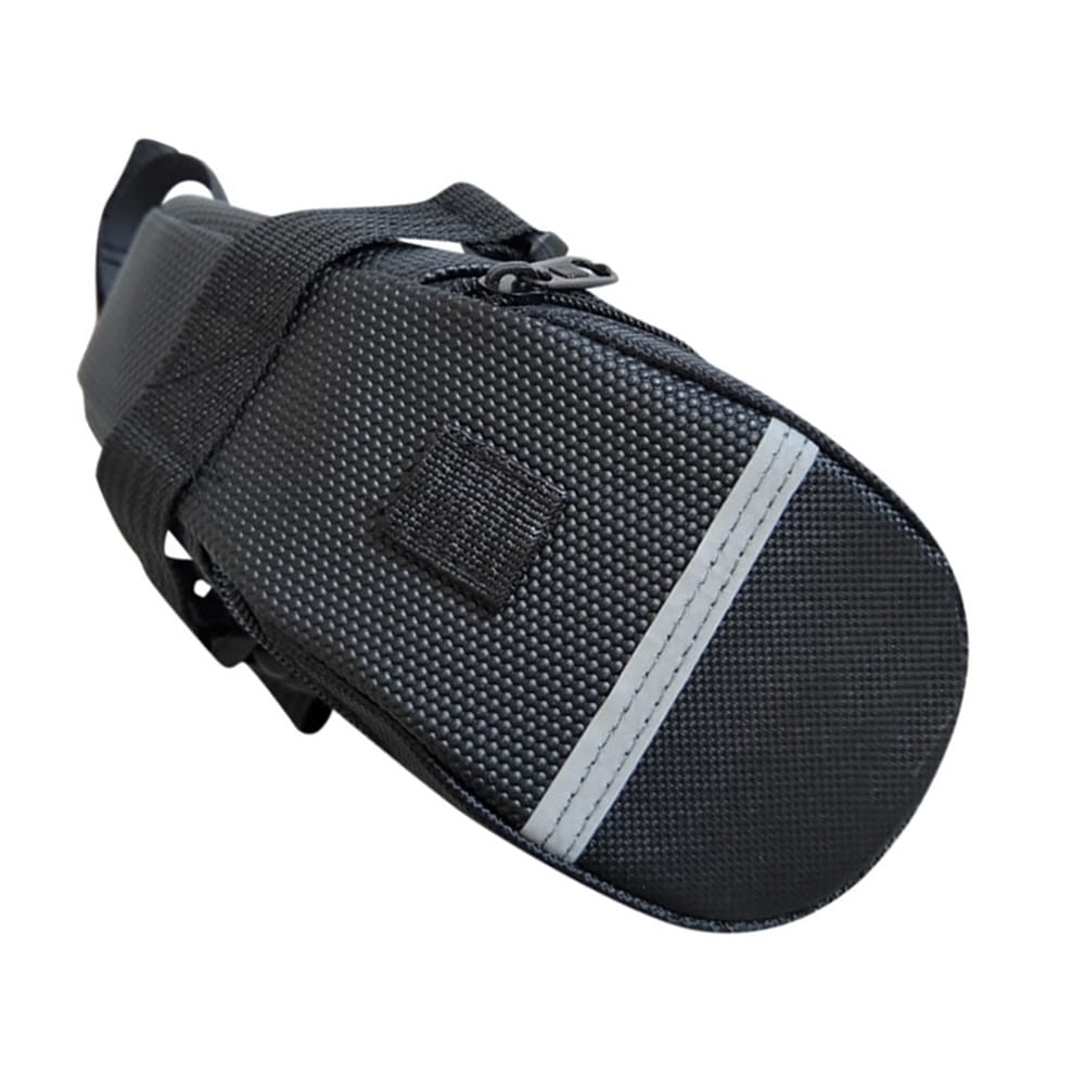 Mini bike saddle bag design large capacity and waterproof the bag is practical to put things. And it is easy to install on the rear saddle of bike.Features:Zip and practical open design make it easy to open and avoid falling out of items.Wide sliver reflective strip safe to mount at night.Enough space inside allows easy storage of your wallet phones towels small tools etc.Made of water resistant polyester sturdy to use.Easy to install on the rear saddle of bike.Specifications:Material: NylonColor: BlackPackage Weight: 110g / 3.88ouncesPackage Size: 200 * 80 * 60mm / 7.87 * 3.15 * 2.36inPacking List:1 * Bike Saddle Bag