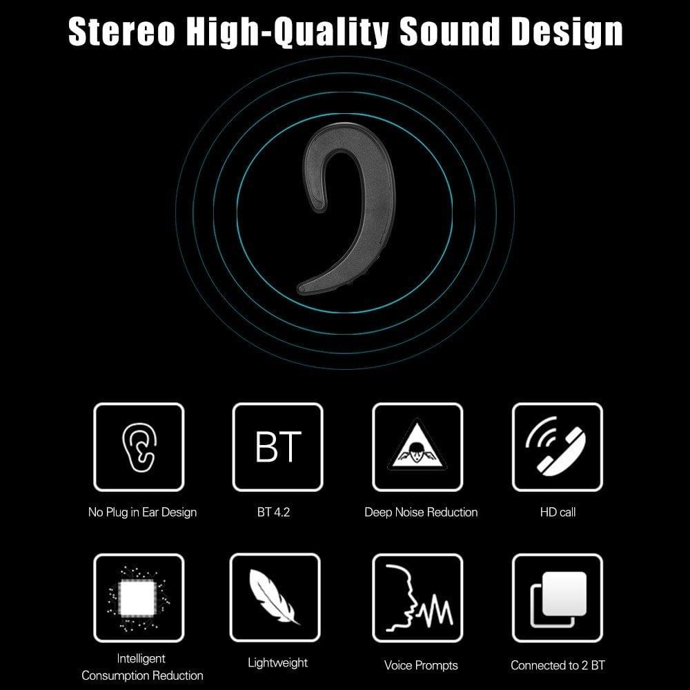 description":"Overview: This wireless headset is designed with powerful BT V4.2. No matter you're communicating, unwinding at home, or doing outdoor sports, you can enjoy incredible audio and high speed & stable signal transmission at the range of 10m with no strings attached. Up to 6 hours talking time or music playing time, and 160 hours stand-by time with a quick charge of only about 1.5 hours. Features: No plug in to ear, just wear in the back of the ear, painless wearing in long time use, light and feel comfortable. Premium-quality speaker and microphone. The speaker is put the closest position of the ear to avoid the loss of sound. Breaking the weight of the conventional BT headset, this wireless BT headset is lightweight, making your ears extremely easy. Two BT devices can be connected at the same time, playing game and answer the phone can be freely switched. Built-in BT 4.2 chip, the ear-hook headphones are compatible with most BT devices on the market. Specifications: Model: Y-12 Material: ABS Color: White, Black (Optional) Wireless Version: BT 4.2 Support Agreement: A2DP1.3/HFP1.6/HSP1.2/AVRCP1.6/D11.3 BT Frequency: 2.4GHZ BT Transmission Distance: 10m Battery Capacity: 90mAh Standby Time: 160hrs Playing/Talking Time: about 4hrs Charging Time: about 1.5hrs Package Size: 11.5*9.7*1.7cm / 4.53*3.82*0.67in Package Weight: 32g / 1.13oz Package List: 1 * Ear-Hook Headphones 1 * Charging Cable 1 * User Manual