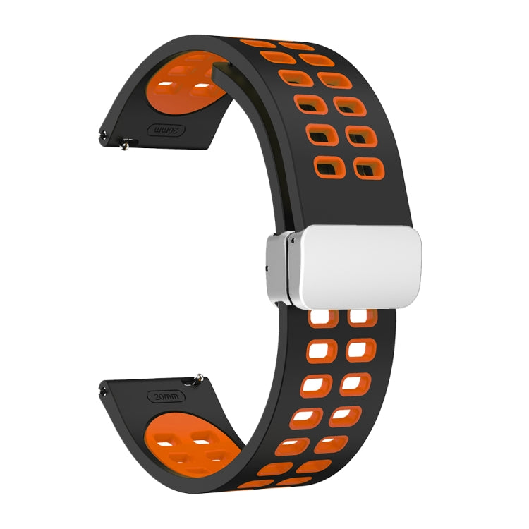 Double-row Hole Folding Silver Buckle Two-color Silicone Watch Band, 22mm
