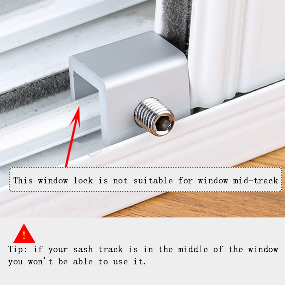 With these window locks and detachable key prevent someone from the outside from being able to open your windows and you don&39;t have to worry about toddler and kids opening a window and jumping out.Features:Provides excellent protection and ensures the windows are always locked.Comes with a hex key in each window locks holding on the track by key control.Made of aluminium alloy design for long time using.The window safety lock can easily be installed without having to rely on any hardware tools.Great for securing your aluminium windows.Specifications:Material: aluminium alloyItem size: 24.5 * 24.5 * 30mm / 0.96 * 0.96 * 1.18inchPackage size: 60 * 50 * 40mm / 2.36 * 1.97 * 1.57inchPackage weight: 35g / 1.23ouncePackage list:1 * Window Lock Stopper
