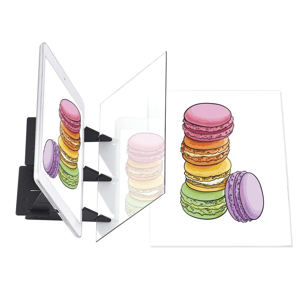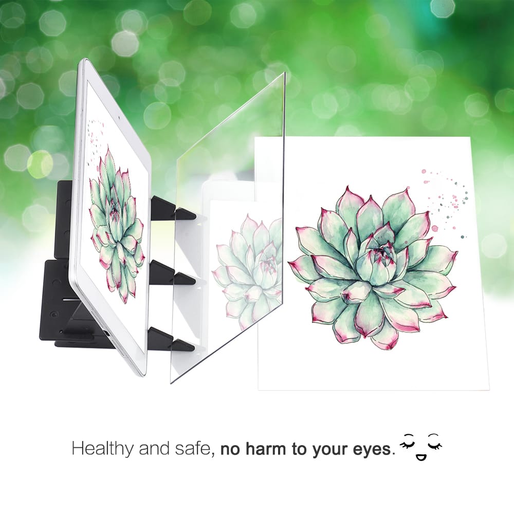 Features:?Principle of Optical Imaging?: The picture can not be projected onto paper through the lens sheet you can see that the picture is imaged on the drawing paper. You can adjust the brightness of your phone or tablet to the desired effect.?No Overlap Shadow?: The lens sheet is made of high quality plastic material good toughness not easy to break. You do not need to print any pictures environmental protection and energy saving. Clear imaging on the transparent board give you a great drawing experience.?Support Phones Tablets?: There are 2 splicing methods for bracket simple and quick to assemble support for most mobile phones and tablets.?APP Download?: You can download APP Pencil Sketch or other relative software to your mobile phone or tablet choose your favorite pictures and convert it to a sketch and then you can start to paint.(Make sure to mirror the image on your mobile phone or tablet before drawing otherwise you will find that the picture is drawn in the opposite direction.)?Zero-based Painting?: Suitable for children kids students adults beginners anime enthusiasts amateurs. You can paint on paper clothes bags and so on.Specifications:Color: TransparentMaterial: PlasticUser Manual: It has Chinese/French/Spanish/English/German/Italian/JapaneseBoard Size: 18.1 * 10.2cm / 15.0 * 10.2cm(Optional)Package Size: 23.0 * 15.0 * 1.5cm / 9.1 * 5.9 * 0.6inPackage Weight: 120g / 4.2oz (18.1 * 10.2cm) 116g / 4.1oz (15.0 * 10.2cm)Notes:Make sure to mirror the image on your mobile phone or tablet before drawing otherwise you will find that the picture is drawn in the opposite direction.Green film can be removed before use do not tear the protective film on the other side otherwise the projection effect will be affected.That side of green film face to mobile phone otherwise the image will show overlap.Package List:1 * Lens Sheet5 * Bracket Parts1 * User Manual(7 Languages)