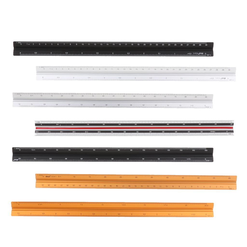Aluminum Alloy Triangular Architectural Scale Drafting Ruler Tool Black S