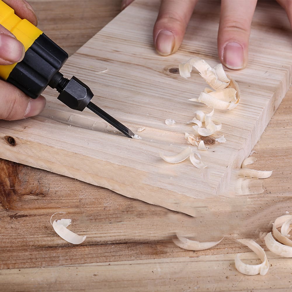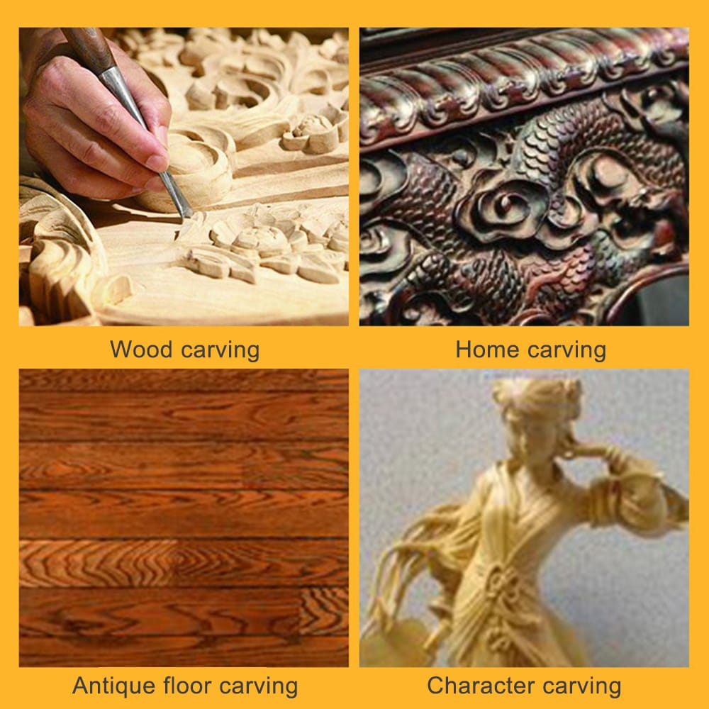 Compact and comvenient easy to use. This product will make your life easier and convenient.Features:Easy to use and convenient.This product is faster than manual carving several times saving time and labor.Used for wood furniture engraving antique floor carving potted plants toys figures animals and other sculptures.Practical wooden cutters the blades are made of stainless steel which is very keen to cut softwood and hardwood.1/3 of the force can be hand-carved speed 3-5 times for carving without fatigue.The electric chisel need to be supported by small hanging mill or drill with the removable flexible shaft to use.Specifications:Plug: 3 types (optional)Length of chisel: 160 mmLength of flexible shaft: 890 mmPackage size: 400 * 200 * 50 mm / 15.75 * 7.87 * 1.97inPackage weight: 1050g / 37.04ounceNote:There are different plug sizes to choose from please choose the one suitable for your country.Package list:1 * Carving machine1 * Chisel5 * Cutters1 * Wrench1 * Flexible shaft