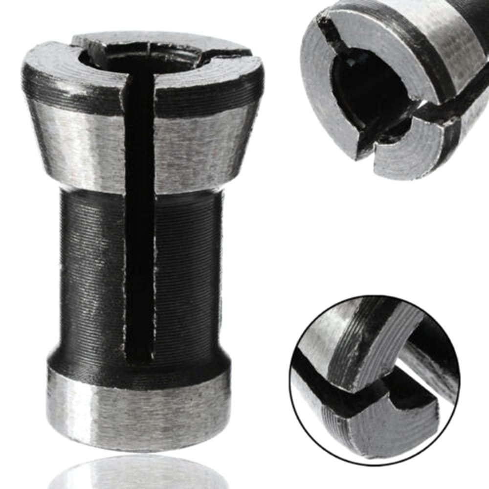 Features:Made from high-quality material.High durability strength and hardness.Easy to use.Supports long time use.Specifications:Material: HSSQuantity: 1pc (8mm / 6mm / 6.35mm) / 1 set (8mm+6mm+6.35mm) (optional)Hole Diameter: 8mm / 6mm / 6.35mm (optional for 1pc)Big H-ead Diameter Outside: 11.8mm / 11.8mm / 12.7mmSmall H-ead Outside Diameter: 10mmOver Length: 16.5mm / 16.5mm / 20mmPackage size: 20 * 20 * 20mm (1pc) 40 * 40 * 30mm (1 set)Package weight: 10g / 0.35ounces (1pc) 30g / 1.06ounces (1 set)Note:1.Due to the different monitor and light effect the actual color of the item might be slightly different from the color showed on the pictures.2.Please allow a little measuring deviation due to manual measurement.Package List:1 * Set of Router Bit Collet