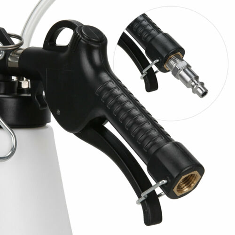The automobile air pump is portable to use and carry fit for most vehicle high efficient clearing one-hand operation simple and quick. No air leakage nice sealing 4 different fluid bottle adapters to fit your master cylinder.Features:Portable to use and carry fit for most vehicle.High efficient clearing one-hand operation simple and quick.No air leakage nice sealing.4 different fluid bottle adapters to fit your master cylinder.Quick clearing and efficient operation without the need for a special brake cover.Works with a standard workshop air supply of approx 90-120 psi.Specifications:Main Color: WhiteMaterial: LasticsInlet Air Pressure: 6-12bar (87-174 psi)Air Consumption: 180ltr/minAir Requirement: 90 - 120 PSIOil Extraction Container Capacity: 1LContainer Capacity: 0.75LThread Connection: 1/4 BSP (Female)Vacuum: 60%Package Weight: 780g / 27.51ouncesItem Size: Main Kettle Size: 210 * 125 * 125mm / 8.27 * 4.92 * 4.92in Ancillary Kettle Size: 290 * 65 * 65mm / 11.42 * 2.56 * 2.56inPackage Size: 270 * 210 * 130mm / 10.63 * 8.27 * 5.12inPacking List:1 * Brake and Clutch Bleeder1 * Refill Container1 * Lastics Adapters1 * Connector1 * User Manual