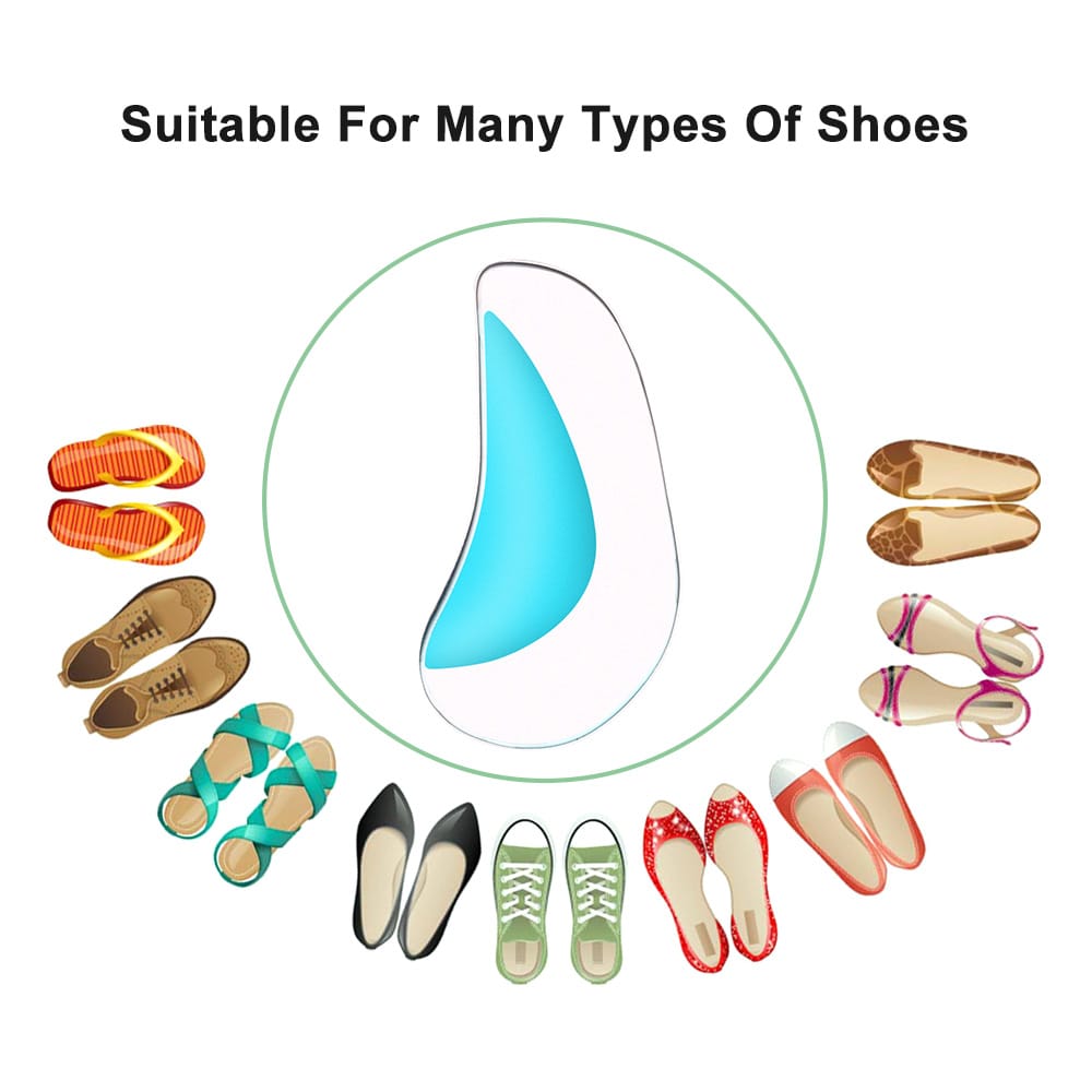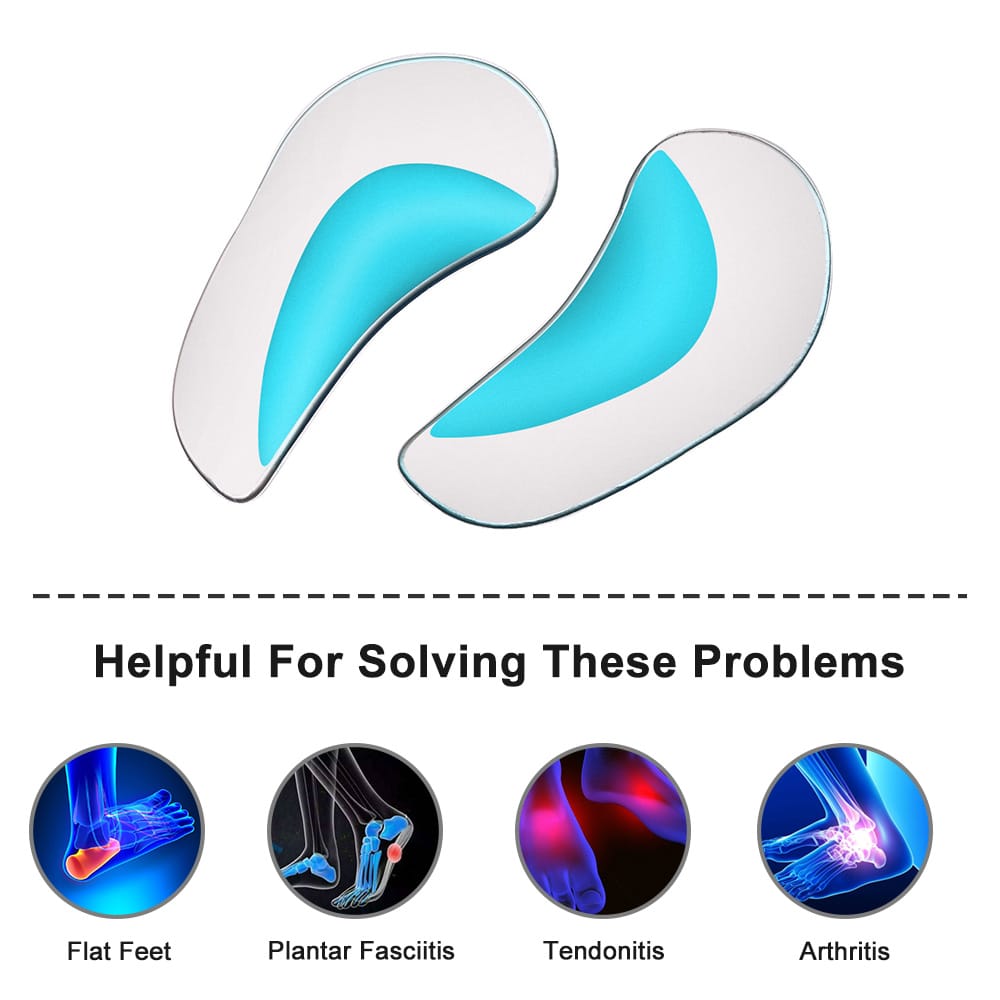 Description:Help you out of pain and pressure related to Plantar Fasciitis tendonitis arthritis high arch and a variety of Arch problems. Come and have a look.Features:Helps to relieve pain and pressure related to Plantar Fasciitis tendonitis arthritis high arch and a variety of Arch problems.Specifically designed for relieving Plantar Fasciitis and Arch pain while standing or walking for a long time.A combination of transparent and blue simple self-adhesive design easy to use.Made of soft gel material smooth flexible and comfortable safe to wear.Suitable for flat feet knock knees which is X-type legs and pigeon toe.Specifications:Type: InsolesMaterial: GelColor: BlueItem Size: Approx. 8.3 * 4cm / 3.28 * 1.57inItem Weight: Approx. 7g / 0.25oz (1pc)Package Size: Approx. 9 * 5 * 0.5cm / 3.54 * 1.97 * 0.2in (L * W * H)Package Weight: Approx. 14g / 0.49ozPackage List:1 * Pair Insoles