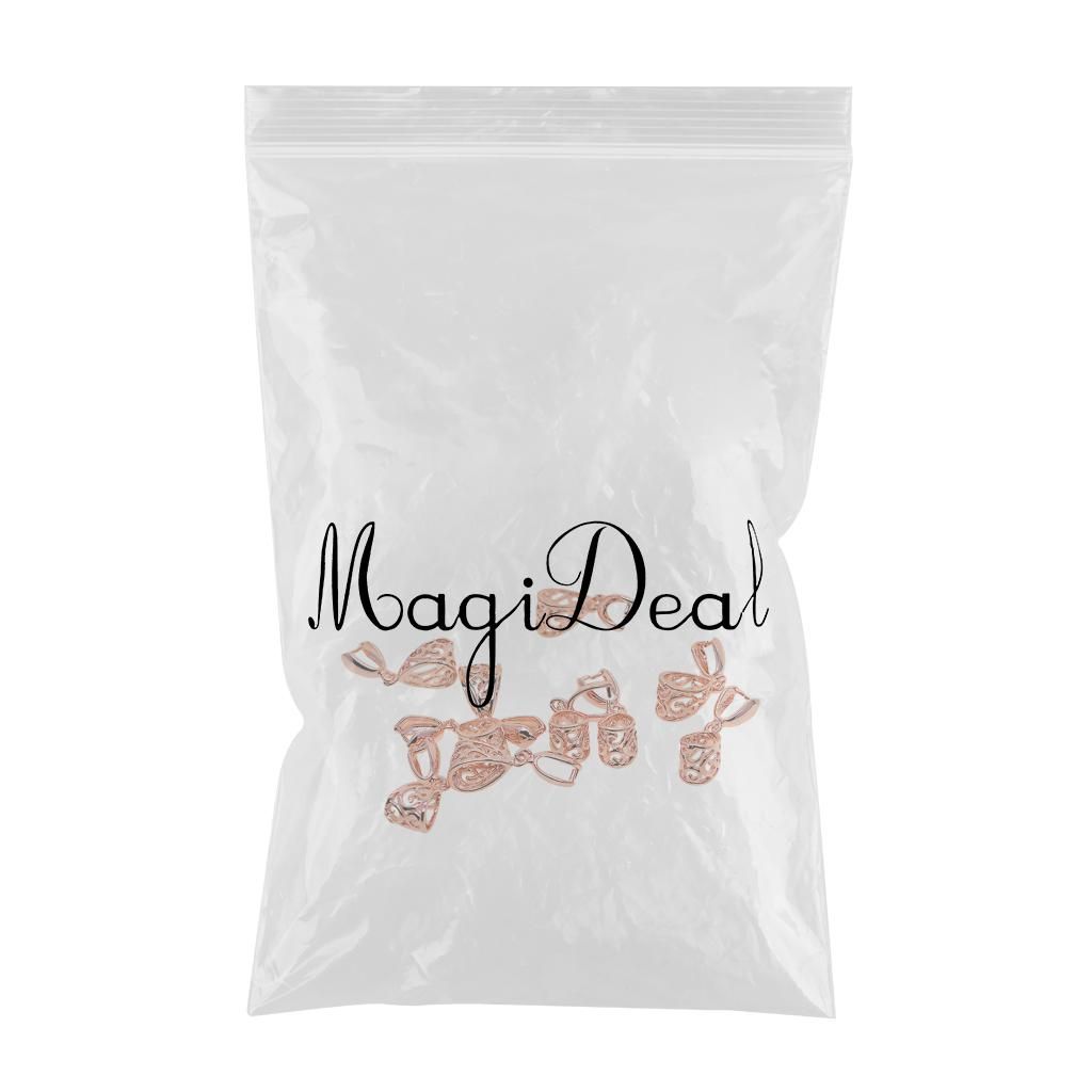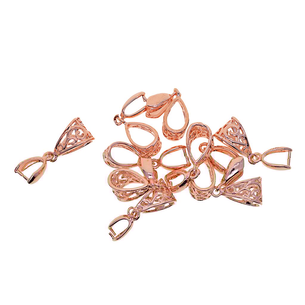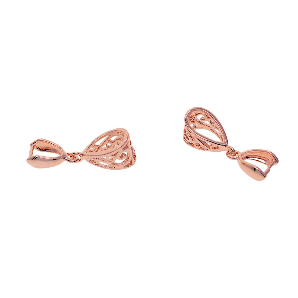 - Platinum/rose gold plated brass pinch style bails with filigree flower connector