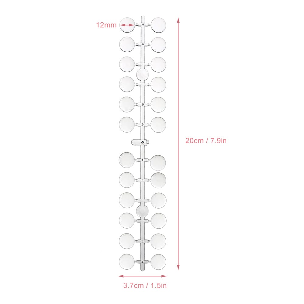 Features:One set includes 120pcs UV Gel Polish bottle color display+120pcs double-sided stickers.Suitable for storage nail polish you can find your nail polish easily without the annoyance of trying each color.Create your own nail art display that is easy to carry.With Double-sided stickers you can paste the color card to any place.Suitable for professional nail salon nail art school / college nail art artist and personal or home use.Specification:Type: Nail Art Display CardMaterial: PlasticColor: TransparentDiameter: 1.2cmQuantity: Approx. 120pcs(5 packs)Package Size: Approx. 21 * 6 * 1cm / 8.3 * 2.4 * 0.4inPackage Weight: Approx. 36g / 1.3ozPackage List:1 * Pack Nail Art Display Card(120pcs)1 * Sheet Double-Sided Sticker(120pcs)