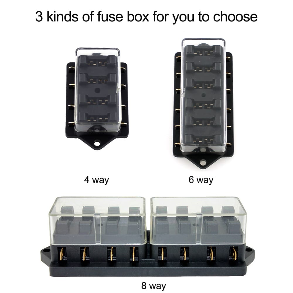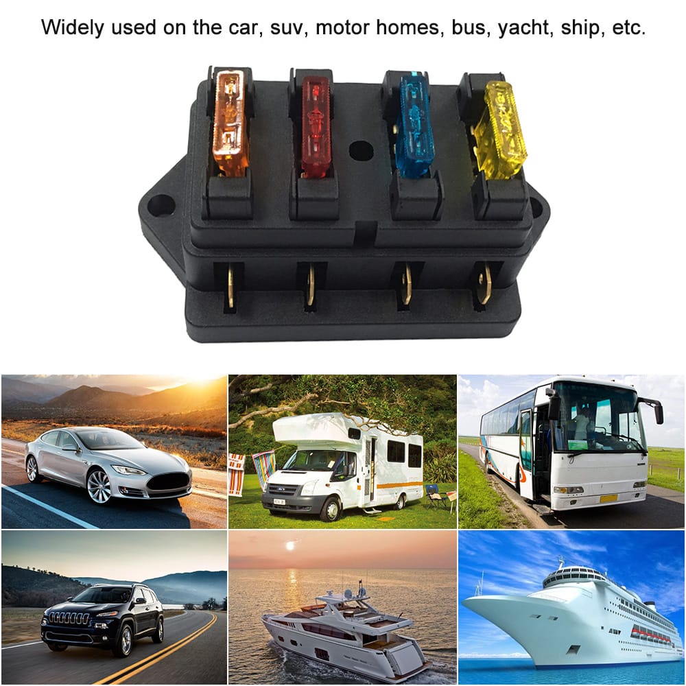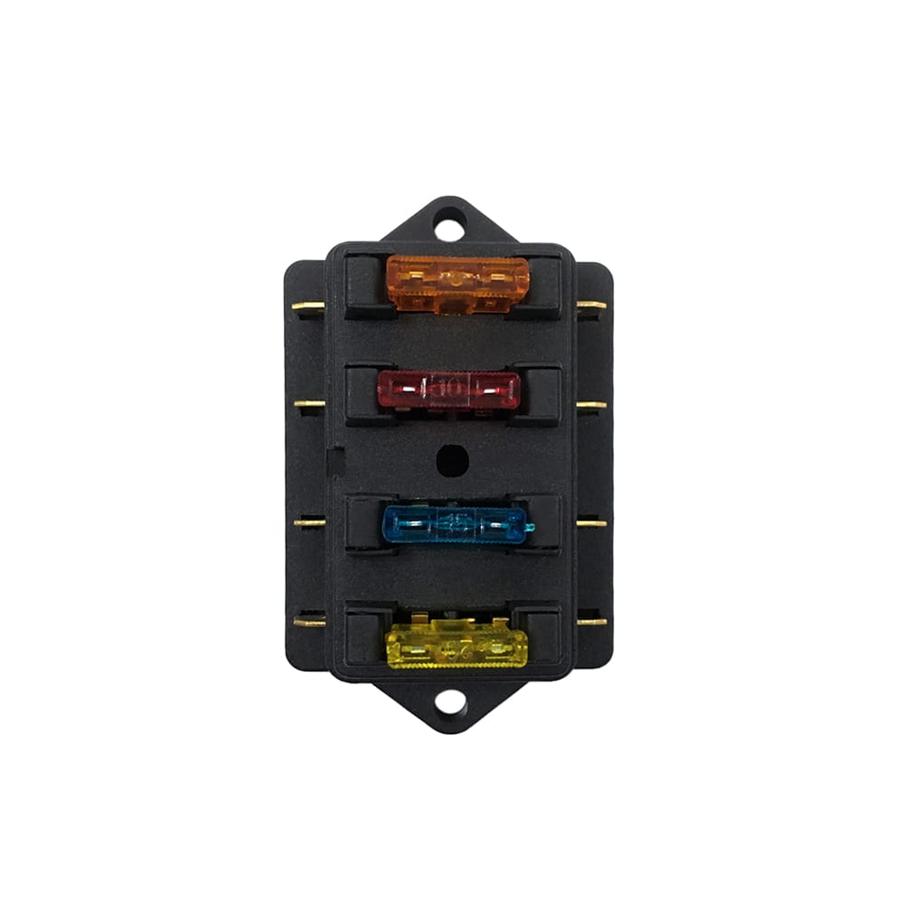 4-Way Blade Fuse Box with Fuses for Automotive & Marine Applications