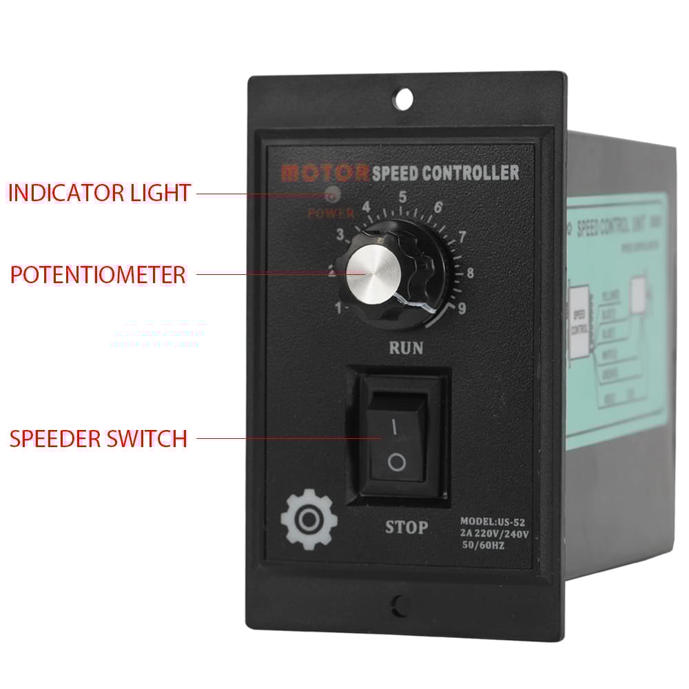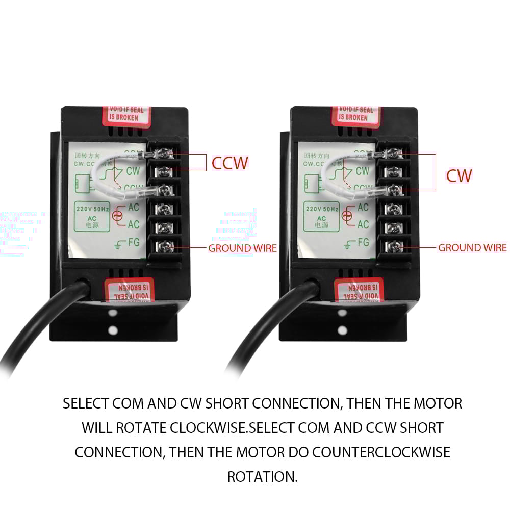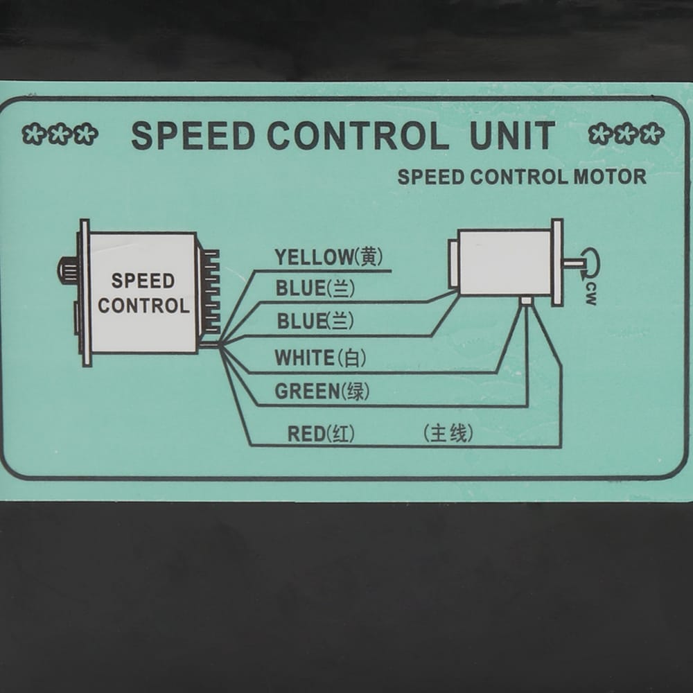 This motor speed controller uses fine quality electronic circuit and integrated components for durability small size high accuracy wide speed controlling range and long service life.Features:This motor speed controller is suitable for AC220V 50/60HZ motor.Speed regulation range is 90-1400r/min 50HZ 90-1700r/min 60HZ.Suitable for packaging printing food electronics instrumentation equipment clothing industry production line for speed control drive devices.The controller uses fine quality electronic circuit and integrated components for durability.It has small size high accuracy wide speed controlling range and long service life.Wiring Method:Redwire is the motor main wire yellow wire is the ground wire.Specifications:Motor Type: AC MotorRated Power: 400WApplication: motor speed regulatorPower Supplied: AC 220V 50/60HzEnvironment Temperature: -10? - 50 ?Relative Humidity: ?90%Speed Regulation Range: 90-1400r/min 50HZ 90-1700r/min 60HZItem Weight: 238g / 8.40ouncePackage Weight: 257g / 9.07ounceItem Size: 110 * 100 * 60mm / 4.33 * 3.94 * 2.36inPackage Size: 130 * 110 * 110mm / 5.12 * 4.33 * 4.33inMethod of use:Turn off the power connect it according to the wiring diagram and make sure the connection is correct.Fix the controller well and set the speed to the lowest 0 so as to avert sudden large current and permanent damage when starting the power supply.Then turn on the power and adjust the speed knob to the desired position. Please turn off the power when not needed.The governor is connected to the motor. If the torque or speed is found to be inconsistent with the requirements please adjust the fine-tuning potentiometer on the side of the product.To change the running direction of the motor simply replace the jumper lines of CCW and CW on the back of the controller.Select COM and CW short connection then the motor will rotate clockwise.Select COM and CCW short connection then the motor do counterclockwise rotation.(When changing direction do not change the direction until the motor stops running completely.)Package List:1 * Speed Controller