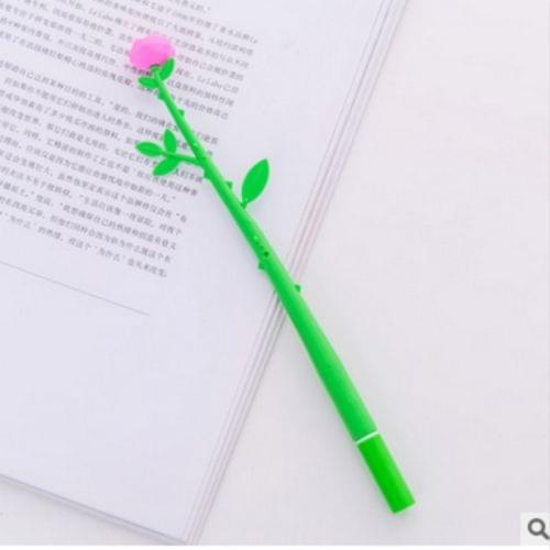 5 PCS Cute Cartoon Simulation Flower Gel Pen Signing Pen(Green Rod Pink Flower)