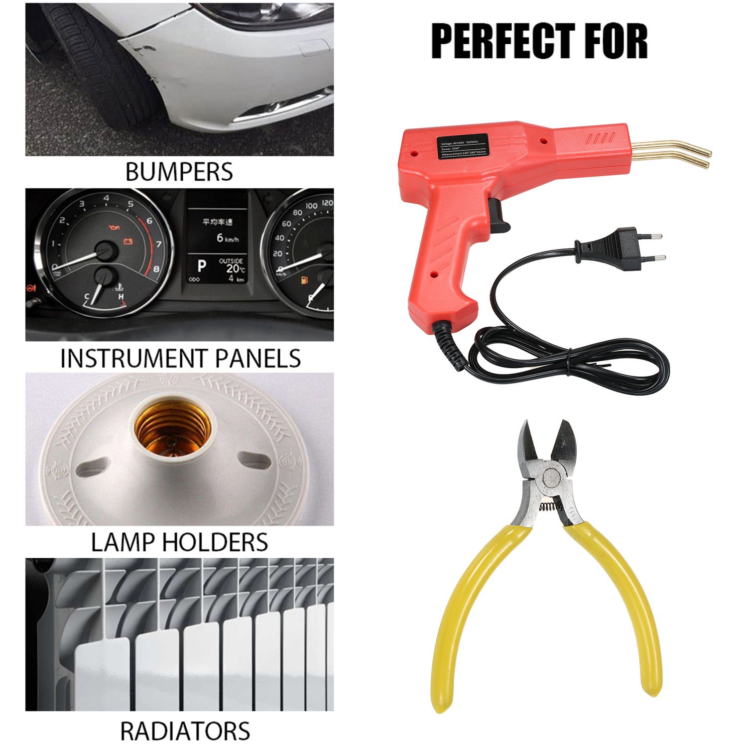 Function 1: Plastic welding (free of nails)filler welding hole repair and eliminate gaps.