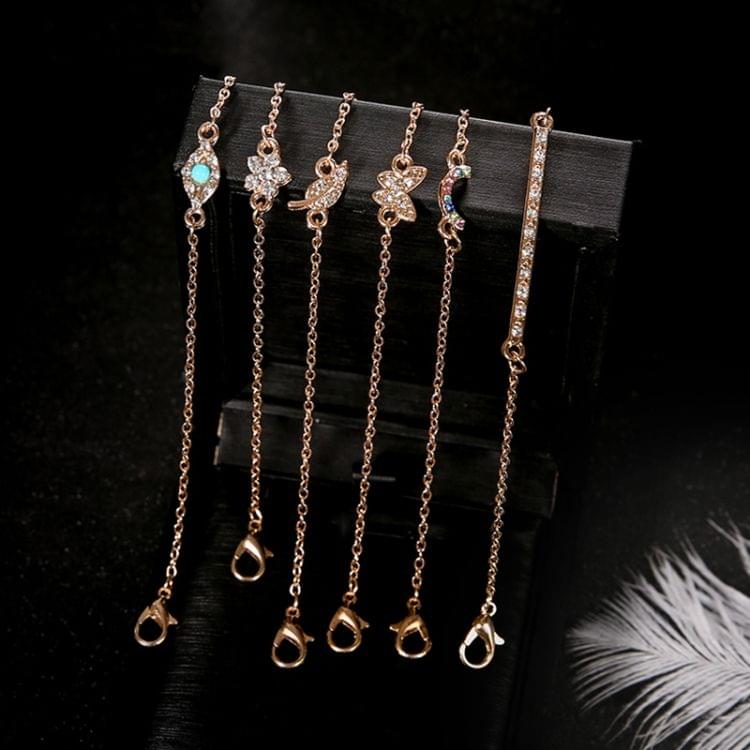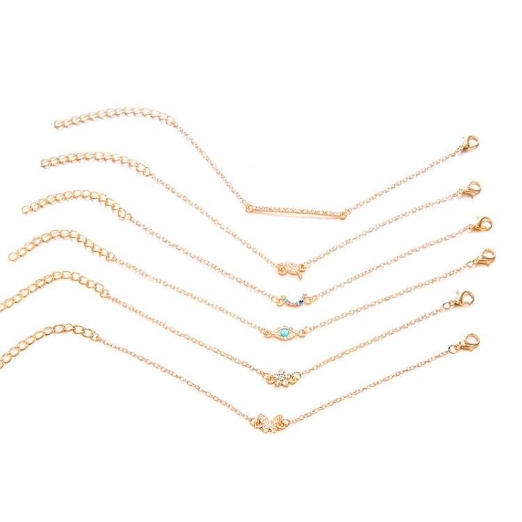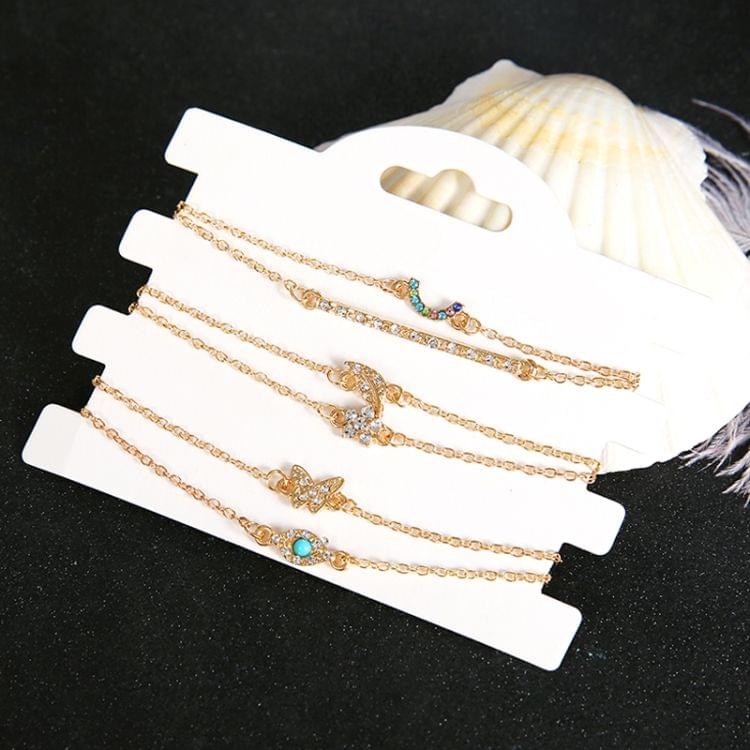 6 PCS/Set Punk Butterfly Eye Star Moon Leaves Crystal Gem Shiny Gold Multilayer Chain Bracelet(Gold)