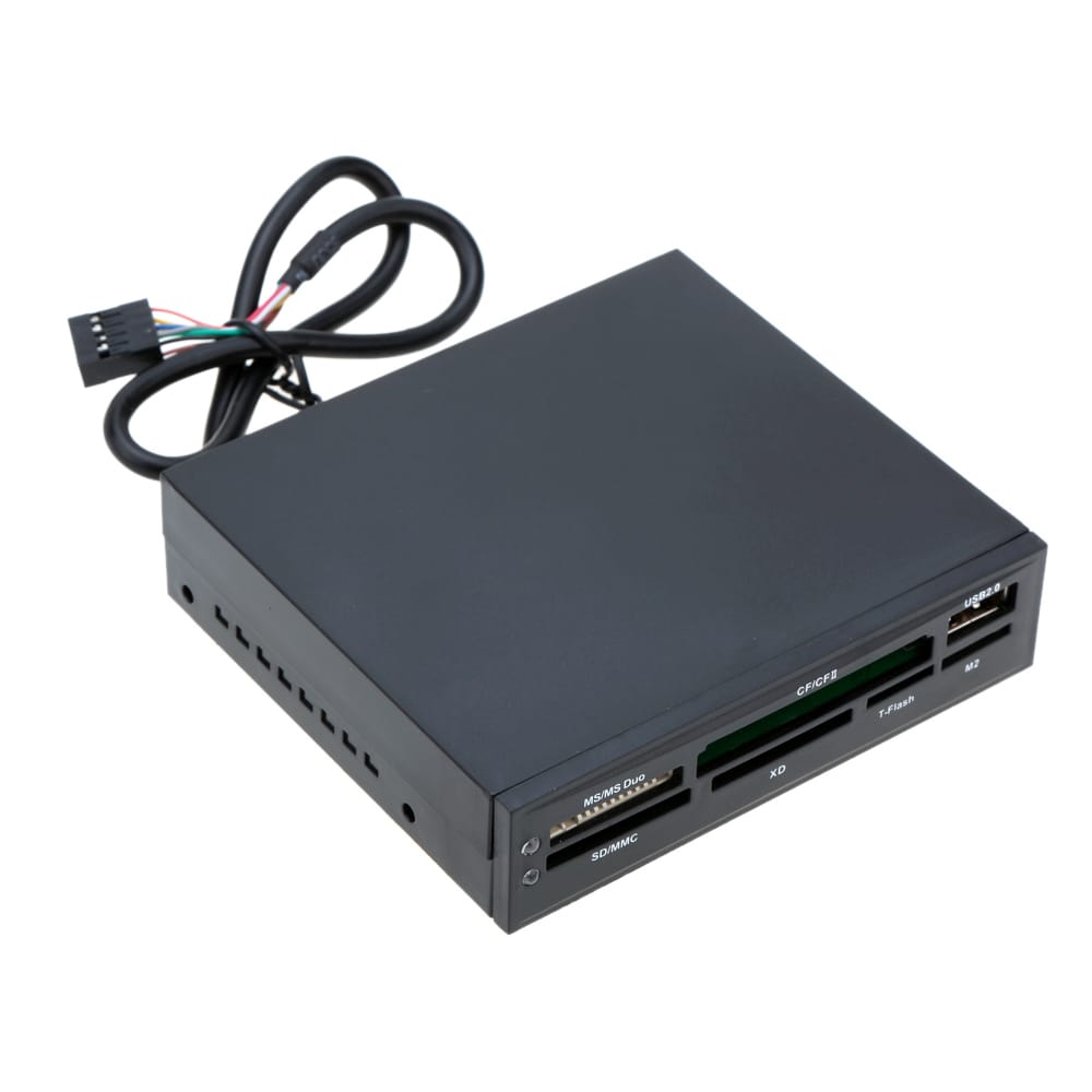 Internal card reader with fast reading and writing. Multi-functional and good substitute of floppy drive.Features:Internal card reader.Fast reading and writing.Multifunction good substitute of floppy drive.Compatible with Windows 98/ME/2000/XP.Cards supported:Compact flash card: CF Type I /CF Type II /Ultra CF;Smart media card;Multimedia card: MMC Type I /MMC Type II /Ultra MMC /RS-MMC /C4.0 /C plus /C Plus /c mobile /C micro /Dvrs MMC;Secure digital card: SD /Mini SD /Ultra SD /Kingmax SD /Extreme SD /SD Ultimate /SD Elite pro;Memory stick: MS /MS-pro /MS-Duo /MS-pro-Duo /MS-MG /MS-pro /MS-MG-Duo /MS-MG-pro-Duo /Ultra MS /MS select function card /Extreme MS;Micro drive;XD/T-flash/C-flash;M2Specifications:Color: blackItem size: 102 * 100 * 21mm / 4.02 * 3.94 * 0.83inItem weight: 90g / 3.17ozPackage list: 1 x Card Reader