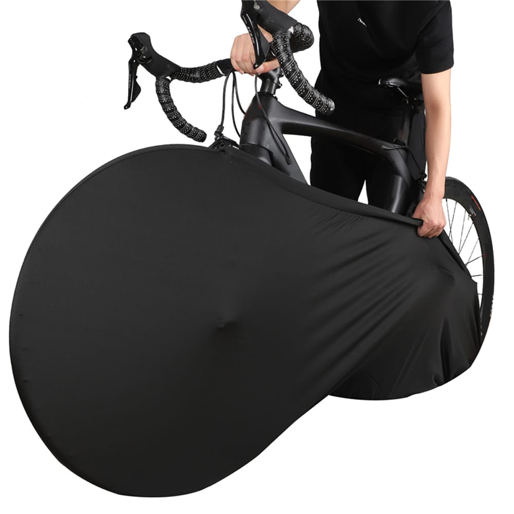 Fine bike bag for taking your gear on trains or other inconveniences. Small packing volume empty clever design with plenty of storage options.Features:Easy to use store and disassemble perfect for indoors.Bicycle cover for indoor floor and wall protections from getting dirty (apartment home office car).Prevents sand mud and other from being brought into a room and walls from getting dirty by bicycle tires.This bicycle guard is made of polyester material which is practical and flexible.his bicycle protector protects the tire from the sun.Specifications:Material: Polyester fiberColor: black grey sky-wheel blue feather colorful light type D white fox type F reflective fabric (optional)Size: S L (optional) ( Reflective fabric only a S size)Applicable size: S: 24 inches 26 inches 700CL: 27.5 inches 29 inchesPackage size: 330 * 220 * 15mm / 13.0 * 8.7 * 0.6inPackage weight: S: 335g / 11.8ounceL: 355g / 12.5ouncePacking List:1 * Bike Protector Cover