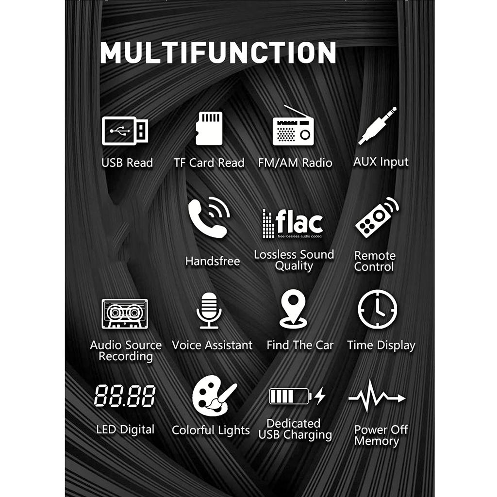 Digital high-quality FM/AM stereo radio.Support card reader and U disk (audio).Support Audio: MP3/WMA/WAV/FLAC.