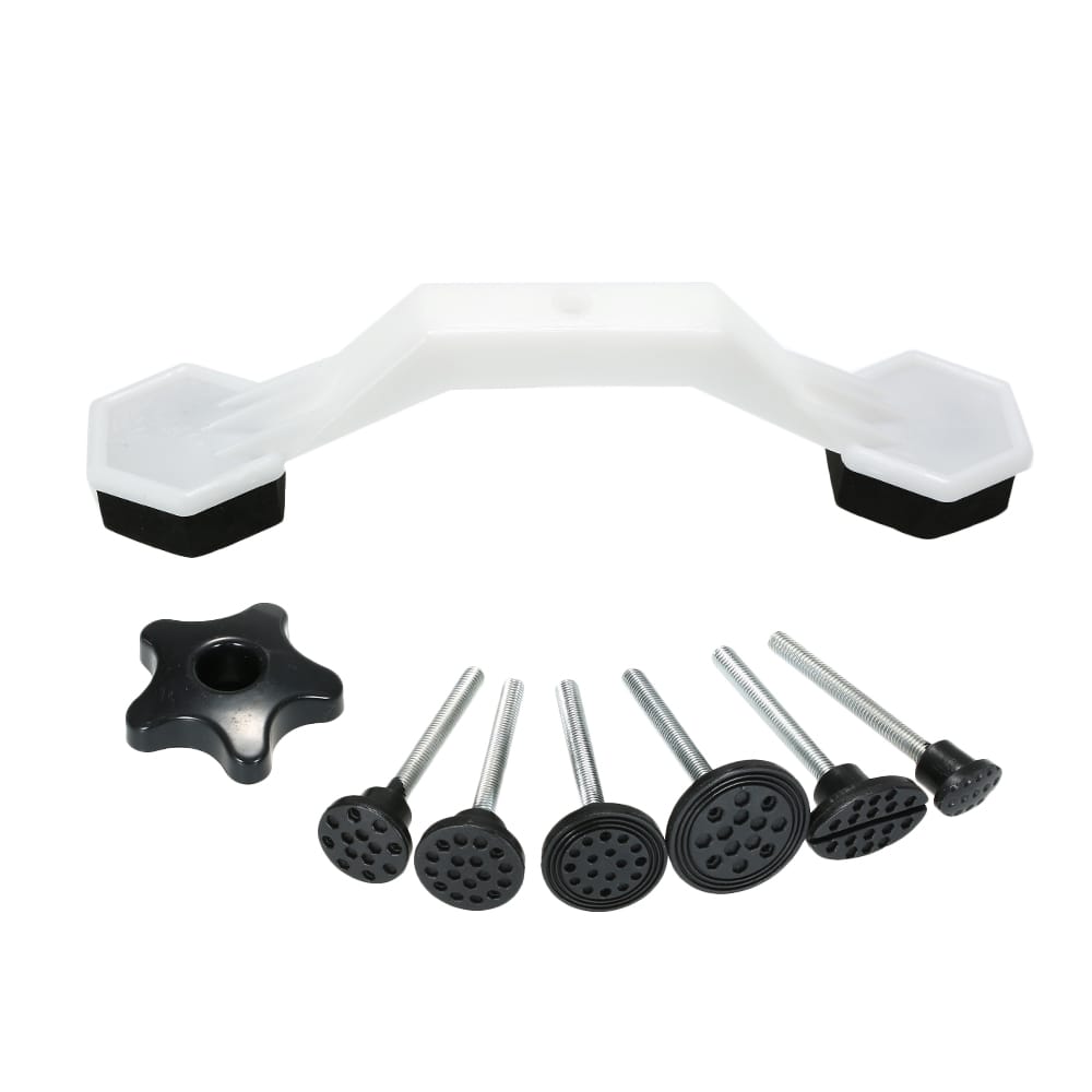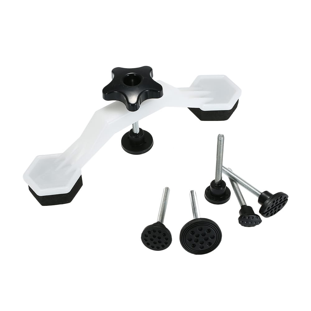 This is a dent ding puller kit which removes dents from hail other car doors and more without damaging the surface of your car.Features:Easy operation:Repair the dents on your car.Replacement suckers in different shapes for multiple purposes.Use widely for the sheet metal processing of automobile refrigerator motorcycle washing machine etc.Simply twist the wing nut and watch the dent disappear.Developed and utilized by professional auto-body experts.Specifications:Material: Metal and PlasticTool quantity count: 9pcsProduct Size: 23*8*3cm / 9.1*3.1*1.2inPackage Size: 25*15*5cm / 9.8*5.9*1.9 inPackage Weight: 190g / 6.7 ozPackage List:1* Bridge Dent Puller1 * White Tap Down Pen6 * Glue Tabs