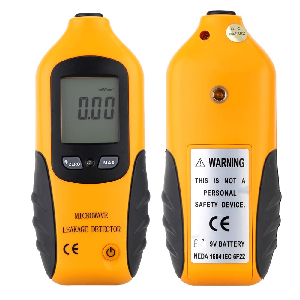 This microwave leakage detector can be used to verify any leakage from microwave ovens within a few minutes.Features:Digital LCD display with backlight easy for reading.Leakage volume in dangerous zones will sound beeping and a red fleshing lamp.Portable design convenient and quick for use.Never needs re-calibration.High sensitivity.MIN/MAX data display and data hold function.Excellent reliability and high precision.Specifications:Calibration: 2450MHzMeasurement Range: 0-9.99mW/cm2Warning: 5mW/cm2Accuracy: (+/-)1dbPower Supply: 1 * 9V Battery (NOT Included)Item Size: 12.5 * 5 * 3cm / 4.92 * 1.97 * 1.18inItem Weight: 78g / 2.76ozPackage Size: 16 * 8 * 5cm / 6.3 * 3.15 * 1.97inPackage Weight: 137g / 4.85ozPackage List:1 * Microwave Leakage Detector1 * Storage Bag1 * User Manual (English)