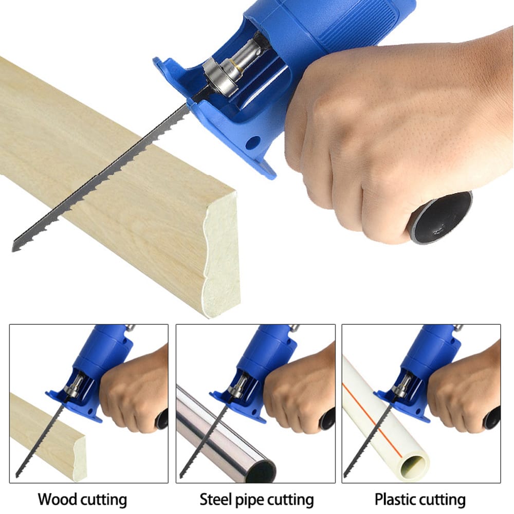 Made of fine quality material practical easy to operate and use wide application range has a long service life.Features:Various materials can be cut: wood cutting steel pipe cutting plastics cutting etc.Steel saw blade chuck the saw blade can be quickly replaced by rotation without disassembly.The clamping diameter of the electric drill connecting rod is 5mm-13mm.Comfortable to hold easy to operate better operating experience.Specifications:Material: ABS+metalColor: blueClamping diameter of electric drill connecting rod: 5-13mm / 0.2-0.5inElectric drill connecting rod diameter: 8mm / 0.3inCutting diameter: 0-120mm / 0-4.7inPackage size: 150 * 110 * 55mm / 5.9 * 4.3 * 2.2inPackage weight: 300g / 10.6ouncePacking List:1 * Electric Drill Converter1 * Handle1 * 150mm Woodworking Saw Blade1 * 135mm Metal Saw Blade1 * 100mm Reciprocating Saw Blade