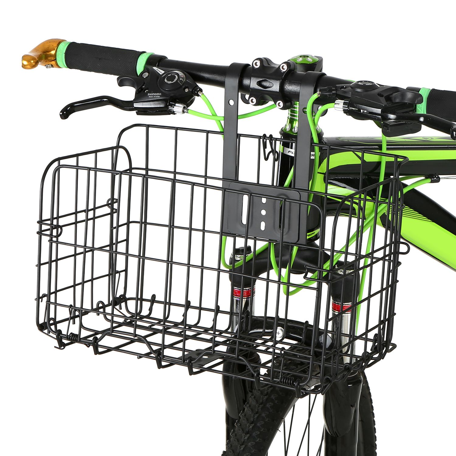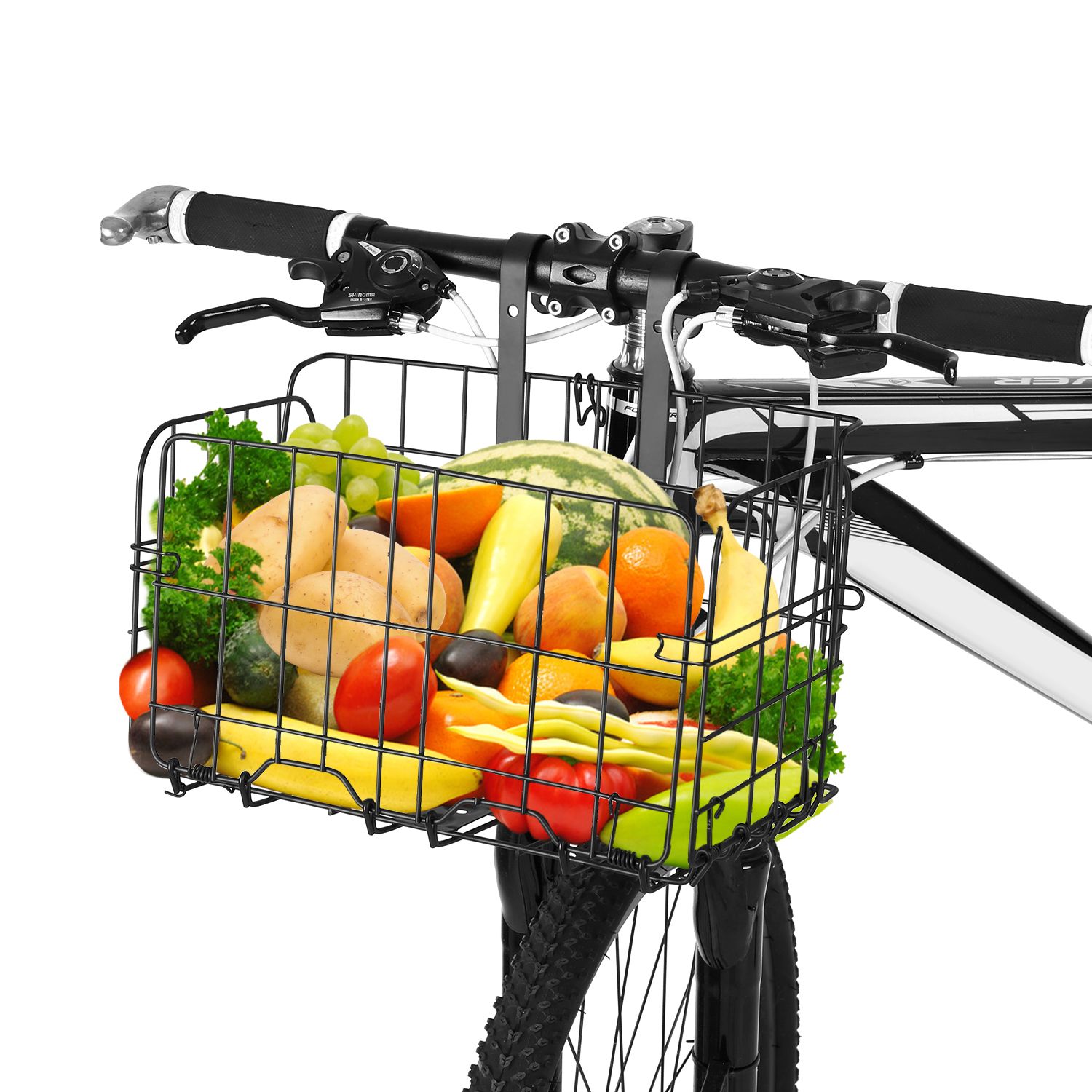 This bicycle basket is made with steel super strong and durable. It can be mounted on the handlebar or the rear rack very convenient for shopping commuting weekend trips.Features:Sturdy steel wire construction durable and rust-resistant.Two hooks easily mount on the handlebar or the rear rack of your bike.Offer ample space for groceries picnic items shopping and other stuffs.Folds up compactly for convenient storage.Great for shopping commuting and weekend trips.Specifications:Material: SteelDimension: Approx. 34 * 20 * 22cm / 13.4 * 7.9 * 8.7inFolded Size: Approx. 34 * 29 * 5.5cm / 13.4 * 11.4 * 2.2inWeight: Approx. 953g / 2.1lbPackage List:1 * Bicycle Basket