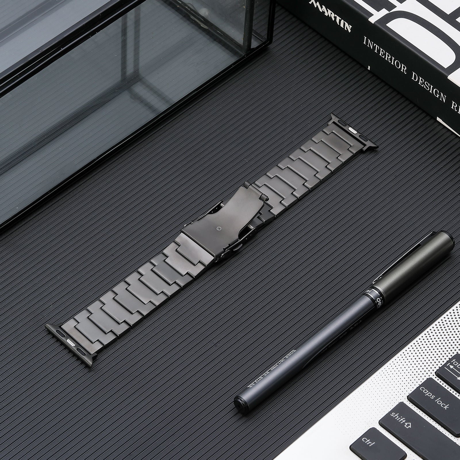 For Apple Watch Ultra 49mm / Series 8 / 7 45mm / 6 / 5 / 4 / SE / SE (2022) 44mm / 3 / 2 / 1 42mm Titanium Steel Watch Band 3 Beads Watch Strap - Grey