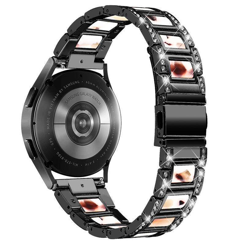 For Huawei Watch GT 2 42mm / Watch 2 / Honor MagicWatch 2 42mm Stainless Steel Watch Band Rhinestone Decor Resin Wrist Strap - Black / Nougat Pattern