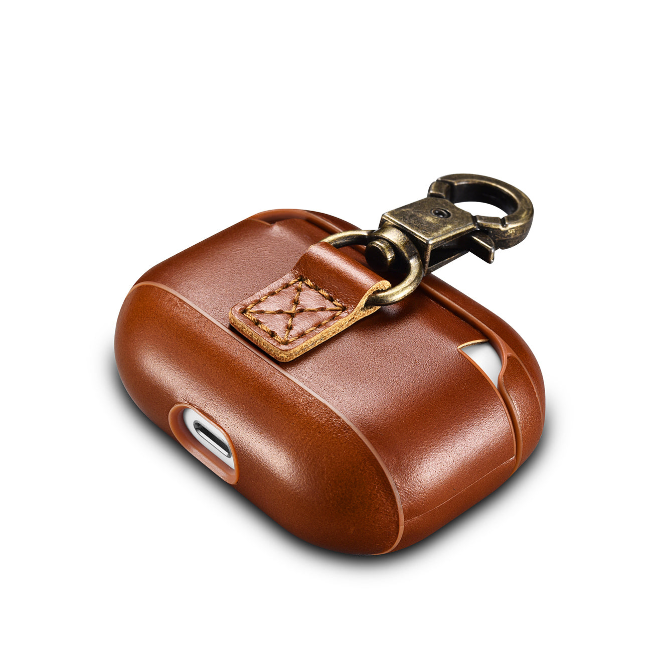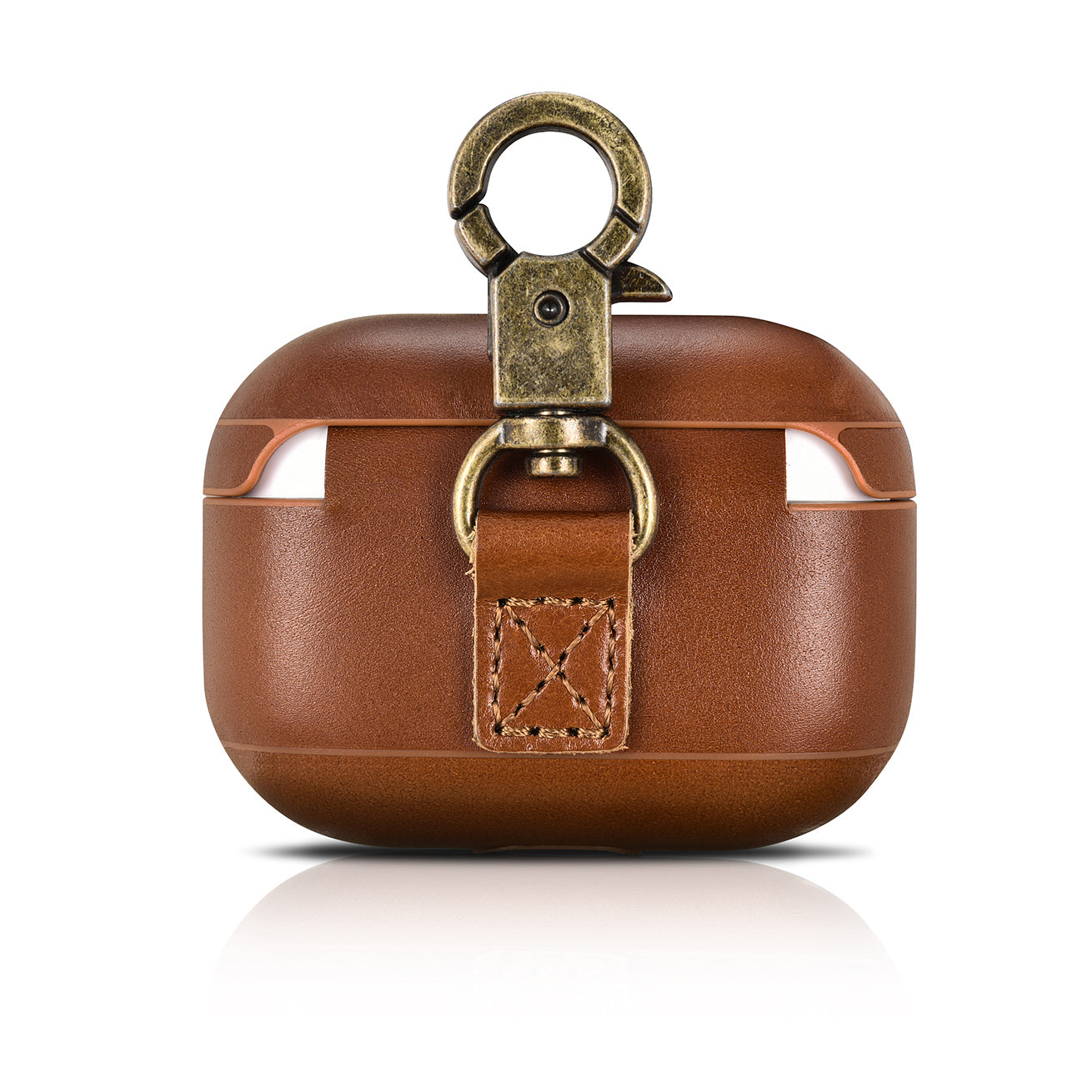 1 x Genuine Leather Earphone Protective Cover Case with Hanging Ring Buckle for Apple AirPods Pro