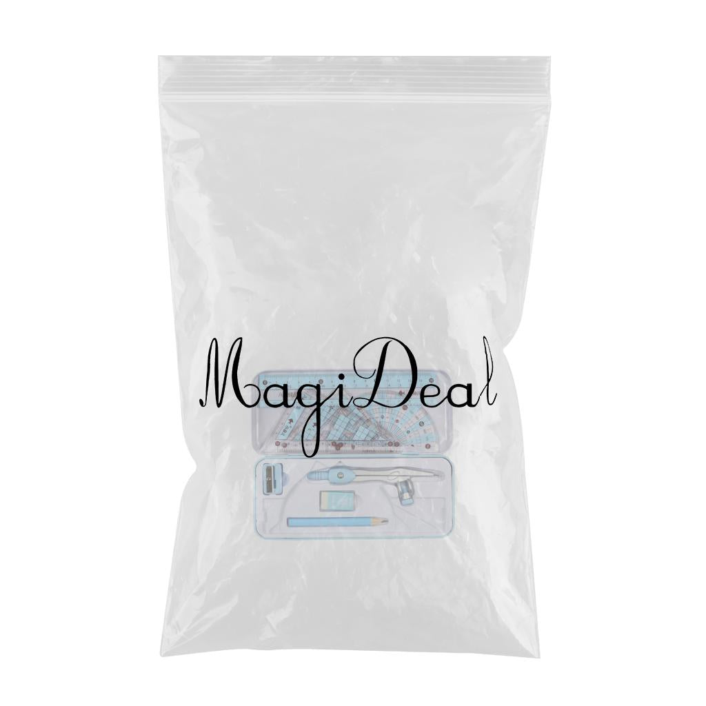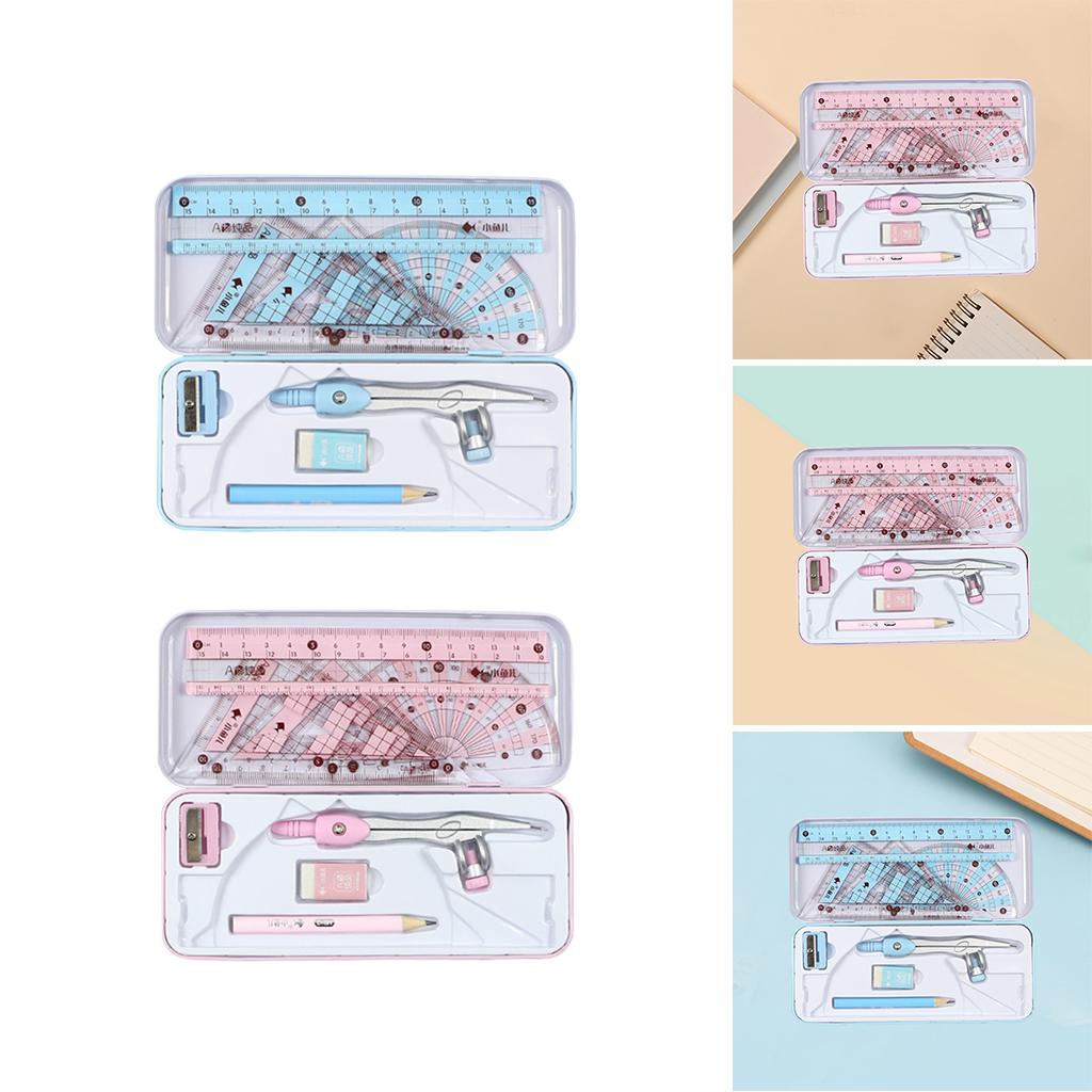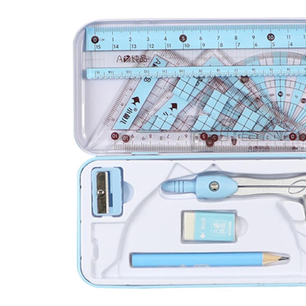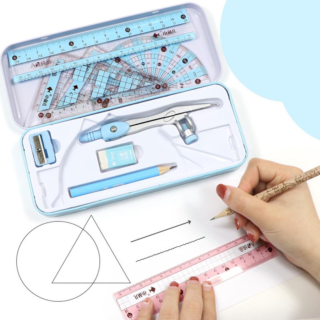Package Includes: Pencil, triangle rulers, straight ruler, protractor,graphic compass and eraser.